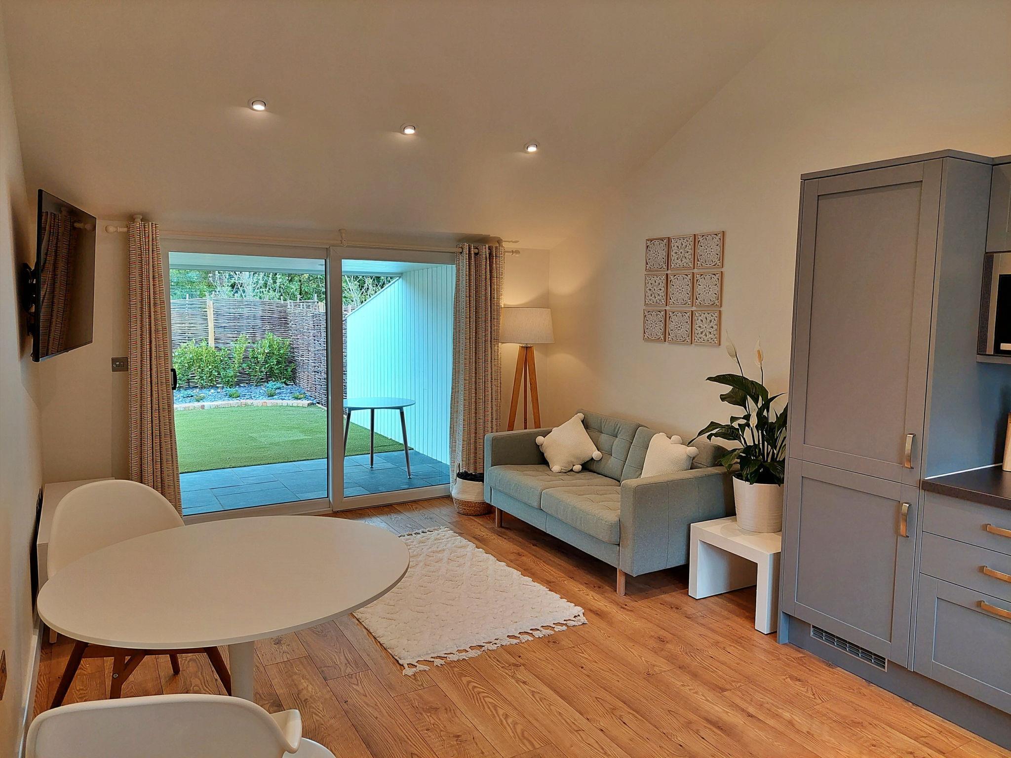 "Little Dunley - Maple", 2-room house 20 m2. Object suitable for 2 adults. Living room. 1 room with 1 french bed. Kitchen (oven, dishwasher, toaster, kettle, microwave, freezer). Shower/WC. Facilities: washing machine. Internet (WiFi, free). Parking (1 car). Please note: non-smokers only.