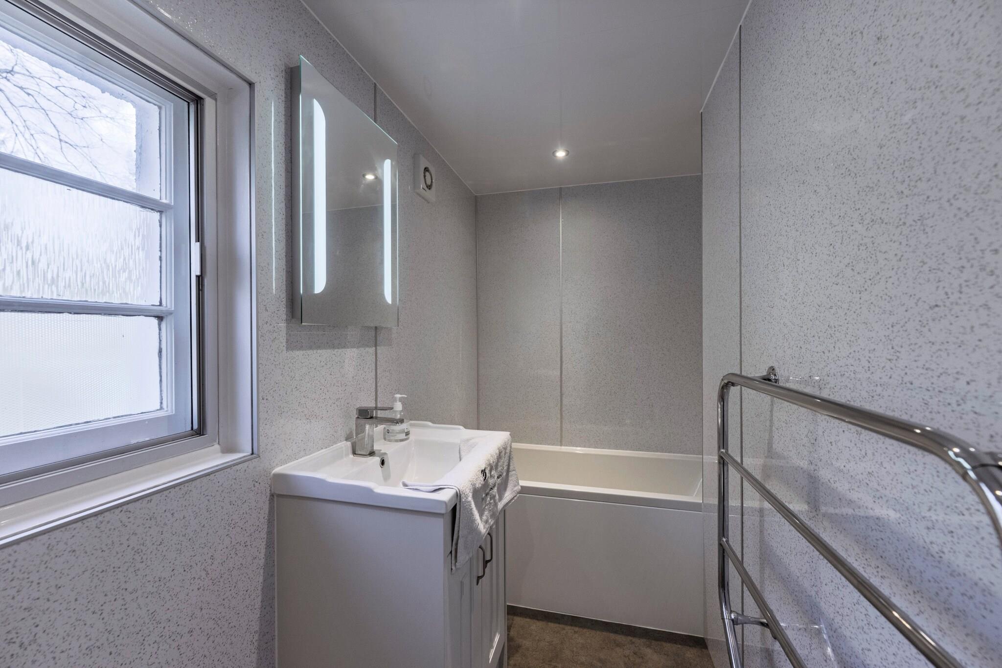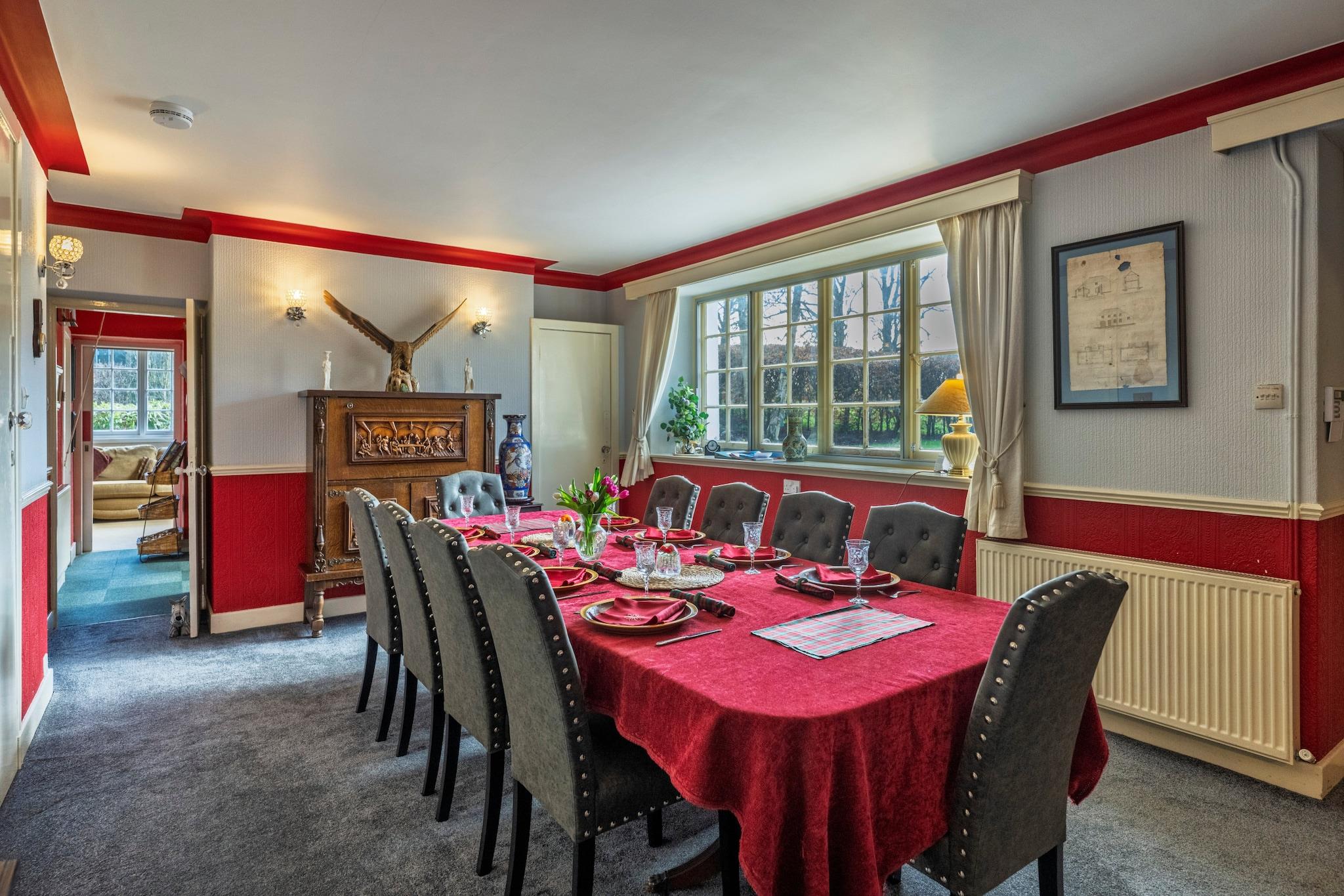 Dette fantastiske højlandsretræte er beliggende i den maleriske by Banff og tilbyder den perfekte base for dem, der søger eventyr i Skotland. Uanset om du udforsker whiskydestillerier, besøger historiske slotte eller blot nyder den lokale skønhed, giver dette hjem et levende og rummeligt miljø til at slappe af og genoplade. Med fem særskilte soveværelser, herunder et stort familieværelse i stueetagen, og tre badeværelser, er der masser af plads til familier og grupper. Køkkenet, med sine charmerende røde og mintgrønne accenter, har en Aga-komfur, en elektrisk ovn og induktionskogeplader. Huset byder desuden på tre hyggelige opholdsområder, perfekt til både socialt samvær og stille stunder. Udenfor kan du nyde de smukke private haver, der omgiver huset. Beliggende kun 10 minutter fra havet, er denne ejendom tæt på den berømte Whisky Trail, der giver mulighed for at besøge kendte destillerier. For dem, der søger en dagstur, er Loch Ness og andre historiske vartegn inden for rækkevidde. På stedet er parkering tilgængelig lige uden for døren med niveau indgang, og stueetagen er tilgængelig med brede døråbninger og et familievenligt design. Ejendommen er kæledyrs- og røgfri med en maksimal kapacitet på 8 voksne. Dette tilflugtssted er et ideelt tilflugtssted for dem, der ønsker at opleve det bedste af Skotland i komfort og stil.