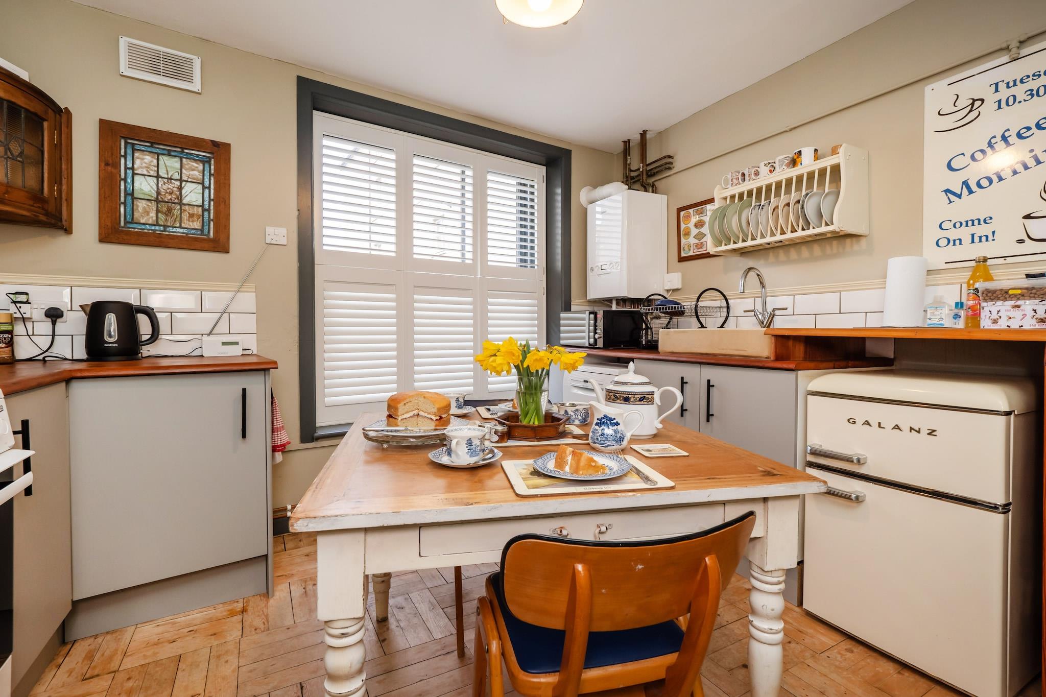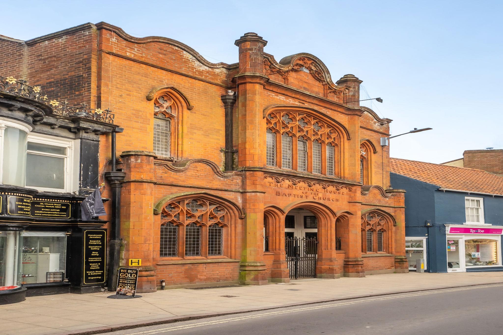 Denne karakteristiske fredede ejendom tilbyder et unikt ophold i et renoveret rækkehus ved siden af ??et historisk kapel i Cromer, Norfolk. Hytten kan rumme op til to gæster med et hyggeligt soveværelse med dobbeltseng placeret på øverste etage, komplet med en ekspansiv karnap med delvis havudsigt. Den mellemste etage har en afslappende lounge, og stueetagen indeholder et veludstyret køkken indrettet med vintage 1940'er og 50'er æstetik, sammen med et brusebad og toilet. Gæster har også adgang til kapellets loungeområde i dagtimerne, selvom adgangen til mezzaninen er begrænset. Kæledyr er velkomne mod et ekstra gebyr, hvilket gør det til et ideelt valg for dem, der rejser med deres lodne ledsagere. Denne ejendom ligger kun få øjeblikke fra Cromers sandstrande og udgør en ideel base for at udforske byen og den omkringliggende Norfolk Coast. Cromer er kendt for sin rige historie, finurlige butikker og museer med det berømte Banksy-kunstværk i nærheden. Kystområdet byder på muligheder for surfing, naturskønne gåture langs Norfolk Coast Path og besøg på lokale vartegn. Gæsterne kan også nyde den livlige mole og den livlige atmosfære i byen. Parkering på gaden er tilgængelig for nemheds skyld, og byens faciliteter er let tilgængelige for en fuld havoplevelse. Rækkehuset er designet til et ophold med egen forplejning og byder på et fuldt udstyret køkken med alle nødvendige apparater. Brusebadet er i stueetagen og tilbyder bekvemmelighed for gæsterne. Opvarmning er inkluderet for ekstra komfort, og der er et tv til underholdning. Selvom ejendommen ikke har Wi-Fi, giver den fremragende modtagelse af mobildata. Der kræves et refunderbart sikkerhedsdepositum, og der er et ekstra gebyr for kæledyrsindkvartering.