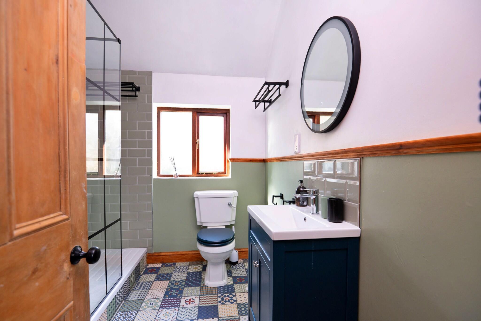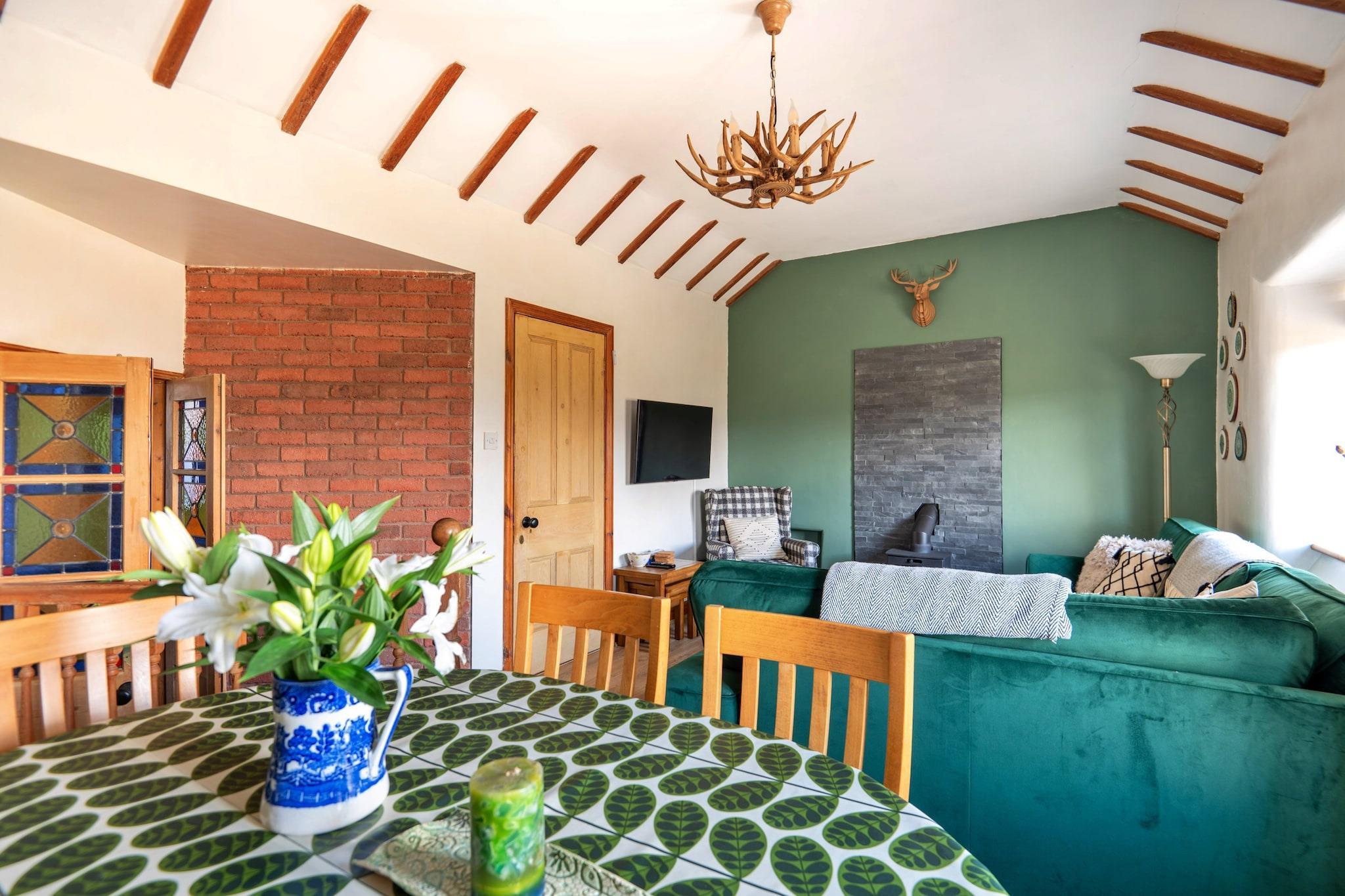 Denne unikke kapelkonvertering tilbyder et bemærkelsesværdigt feriehus i det landlige Denbighshire, hvilket giver et fredeligt tilflugtssted med nem adgang til Snowdonias fantastiske landskaber. Oprindeligt bygget som et walisisk kapel i 1772 og udvidet i 1790, er denne karakteristiske ejendom blevet omhyggeligt omdannet til et indbydende sted for familier, venner og par. Boligområdet bevarer sin oprindelige charme med markante farvede glasdøre og synlige træbjælker, hvilket skaber en hyggelig og indbydende atmosfære. En brændeovn tilføjer varme, mens brætspil giver underholdning til afslappende aftener i. Det fuldt udstyrede køkken sikrer, at du kan tilberede hjemmelavede måltider, og den rummelige spiseplads tilbyder et perfekt sted til måltider sammen. Ejendommen sover komfortabelt op til fem gæster fordelt på tre smukt dekorerede soveværelser. Det store soveværelse har en king-size seng, der sikrer en god nats søvn, mens dobbeltværelset er ideelt til børn eller venner. Et hyggeligt enkeltværelse fuldender boligen. Det moderne badeværelse er udstyret med en stor bruseniche, håndvask og toilet, hvilket giver komfort og bekvemmelighed. Beliggenheden tilbyder den perfekte base for udendørs eventyr, med panoramaudsigt over Snowdonia-bjergkæden kun en kort gåtur væk. Selve Denbighshire byder på et væld af vandrestier, fredelige landskaber og lokal arv. Gæsterne kan nyde nærliggende attraktioner såsom Llyn Brenig til vandsport og cykling, Snowdon Mountain Railway og ZipWorld for spændende aktiviteter. Kæledyrsvenlig og fuld af karakter, dette feriehus byder velkommen til en velopdragen hund, med specifikke retningslinjer for at sikre komforten for alle gæster og for at beskytte det omkringliggende landbrugsland.