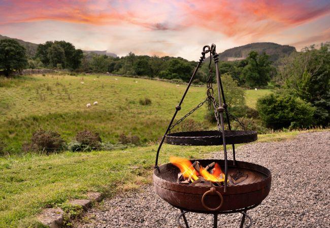 The garden is a true highlight, with a multi-level lawn, a gentle stream, mature trees, and a choice of seating areas including a large picnic table, a bistro set, and an Indian firepit and grill. Whether you're enjoying a summer BBQ or stargazing under a clear night sky, the setting is peaceful and enchanting.