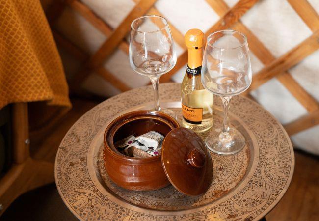 Inside, the yurt offers a simple but comfortable setup. A log burner keeps the space warm during cooler months, and a double-hob gas stove allows you to cook your own meals. You’ll find everything you need, including saucepans, utensils, and crockery. Solar lighting and two USB sockets are available, keeping things off-grid but practical. You can fill up and reuse the bottle provided using the outdoor tap, all water should be boiled as it comes from our natural spring – straight off the mountain!