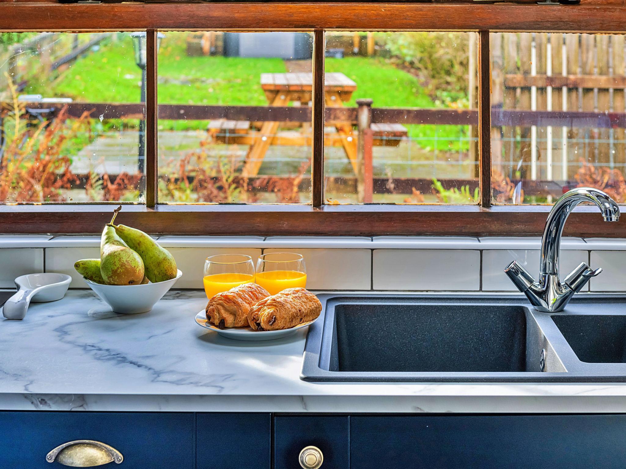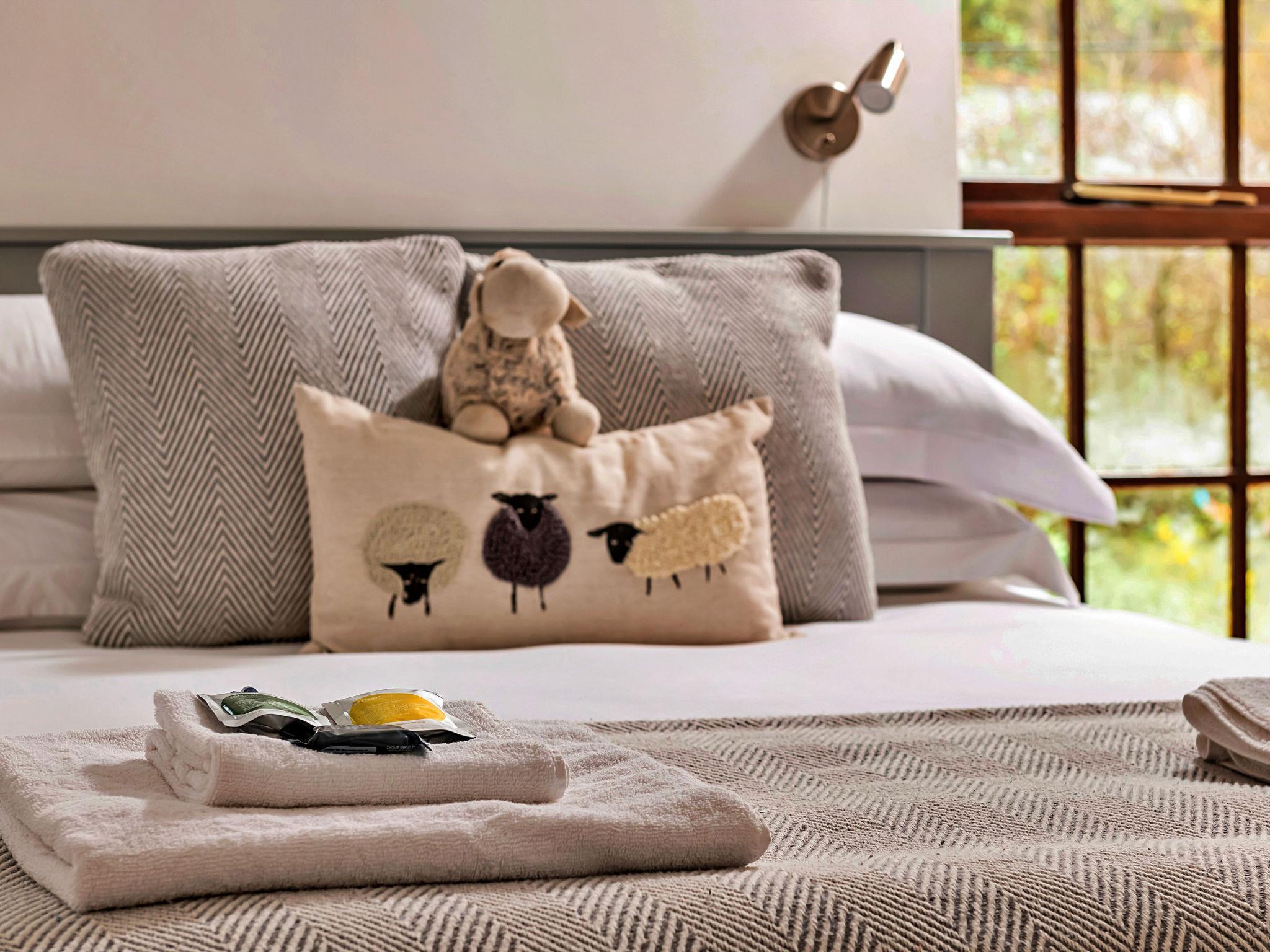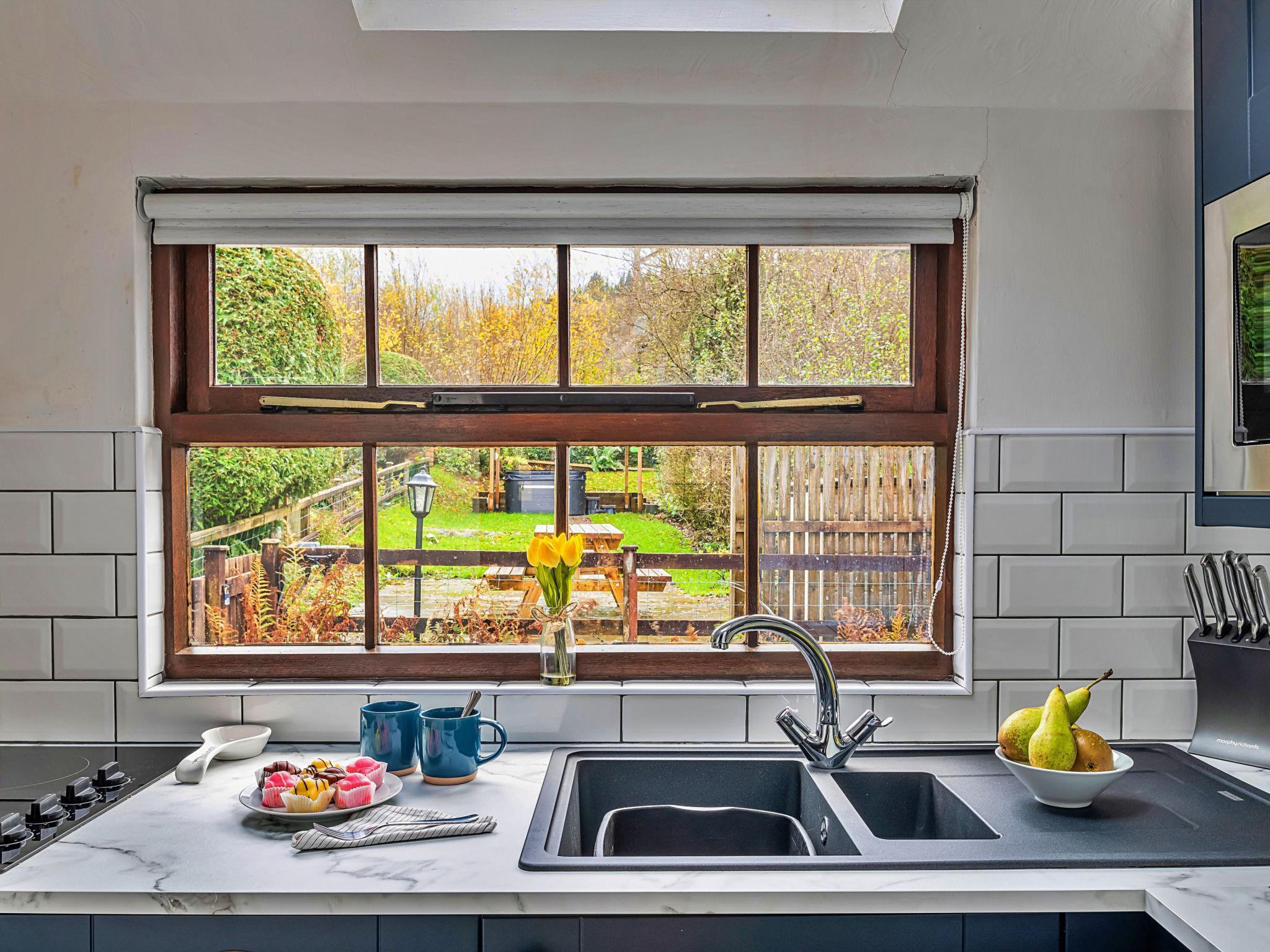 "Ty'r Delyn", 3-room house 110 m2. Object suitable for 5 adults. Living room with open-hearth fireplace and TV. 1 room with 1 bed and 1 french bed. 1 room with 1 double bed. Kitchen (4 hot plates, oven, dishwasher, toaster, kettle, microwave). Shower/WC. Terrace 30 m2. View of the mountains, the garden and the river. Facilities: iron. Internet (WiFi, free). Please note: non-smokers only. Smoke alarm.