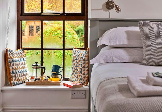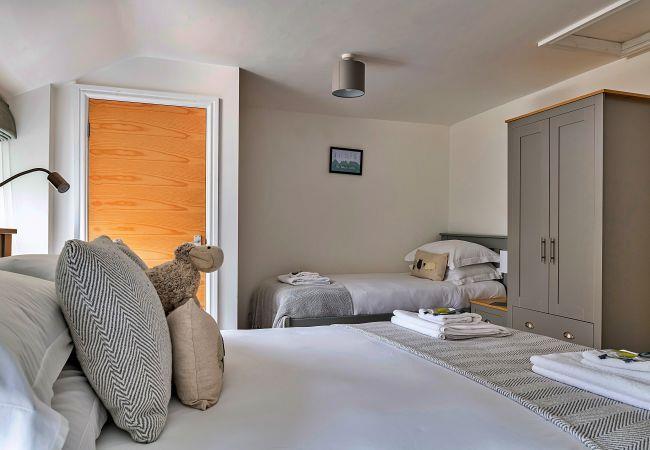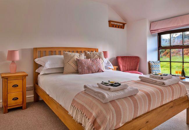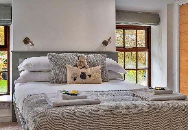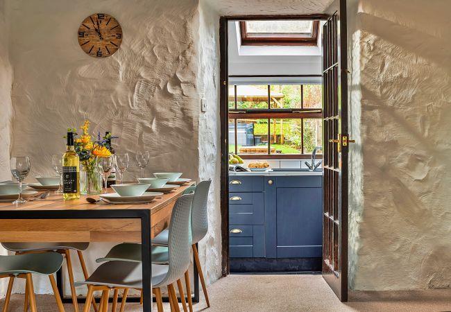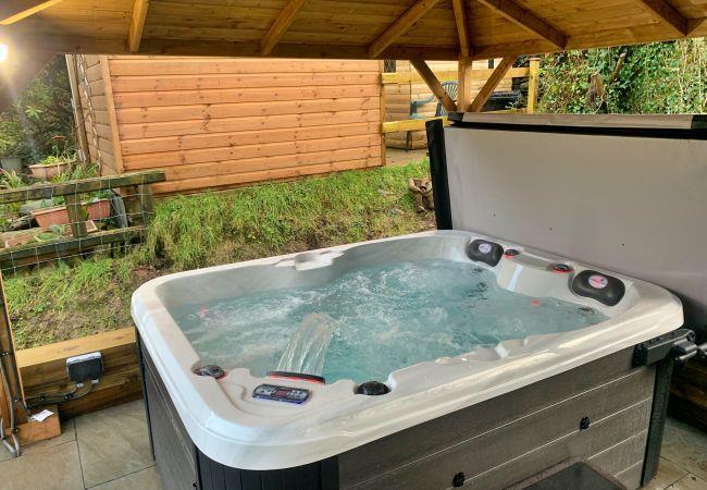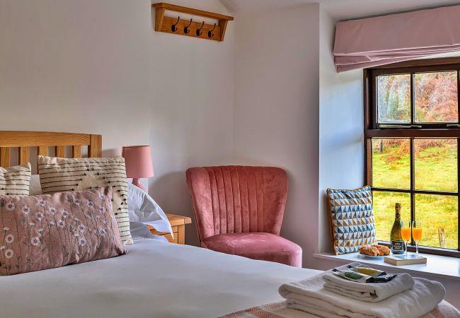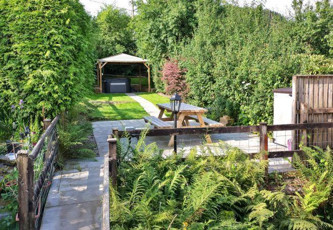 Whist retaining many of its original features, Ty’r Delyn has recently been modernised to provide the perfect sanctuary to relax with a luxury hot tub, log fire and snug living spaces. The cottage comfortably sleeps five people across the two upstairs bedrooms, which neighbour the stylish bathroom with a walk-in shower. The master bedroom has a king-sized double bed and a single, whilst the second bedroom has a double. On the ground floor, the recently renovated kitchen is fully equipped including a slimline dishwasher. The kitchen backs onto a sizeable garden with a family dining area and a hot tub located under a wooden gazebo.