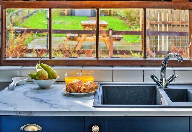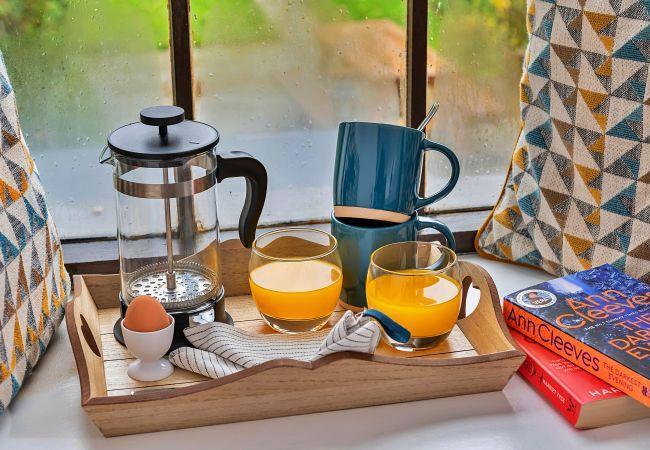 With WiFi, board games, books and a wide screen TV, the living area provides the perfect area to relax with friends and family whilst feeling the warmth from the log burner (there are even some friendly sheep to watch out of the living room and bedroom windows as they peacefully graze the neighbouring field!) The dining area has been tastefully furnished and houses a dining table that comfortably seats 6 people.