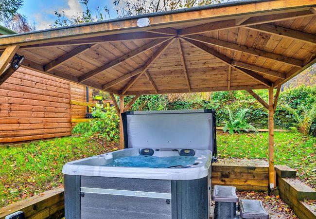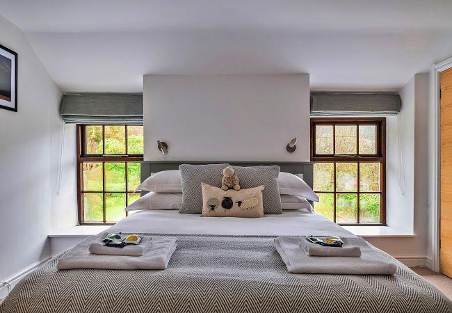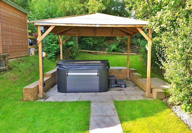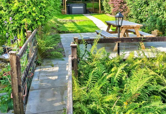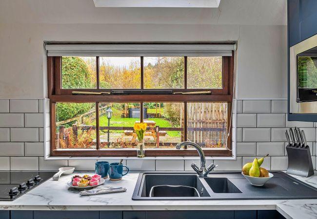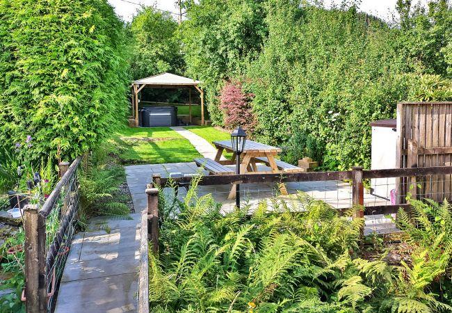 Whist retaining many of its original features, Harp House has recently been modernised to provide the perfect sanctuary to relax with a luxury hot tub, log fire and snug living spaces. The cottage comfortably sleeps five people across the two upstairs bedrooms, which neighbour the stylish bathroom with a walk-in shower. The master bedroom has a king-sized double bed and a single, whilst the second bedroom has a double. On the ground floor, the recently renovated kitchen is fully equipped including a slimline dishwasher. The kitchen backs onto a sizeable garden with a family dining area and a hot tub located under a wooden gazebo. A local stream passes underneath the kitchen window and there's a bridge over it to reach the private and enclosed garden. Because of the stream we recommend young children are supervised whilst in the garden.