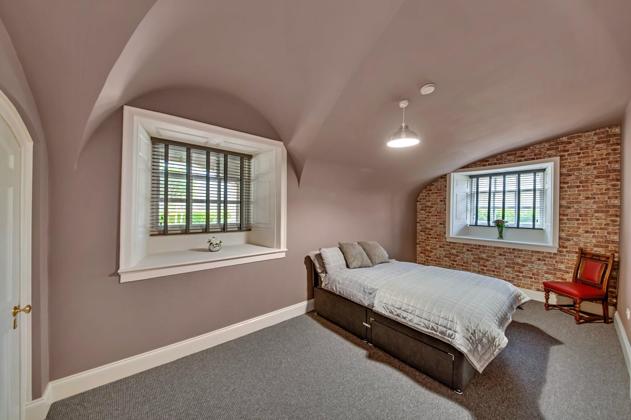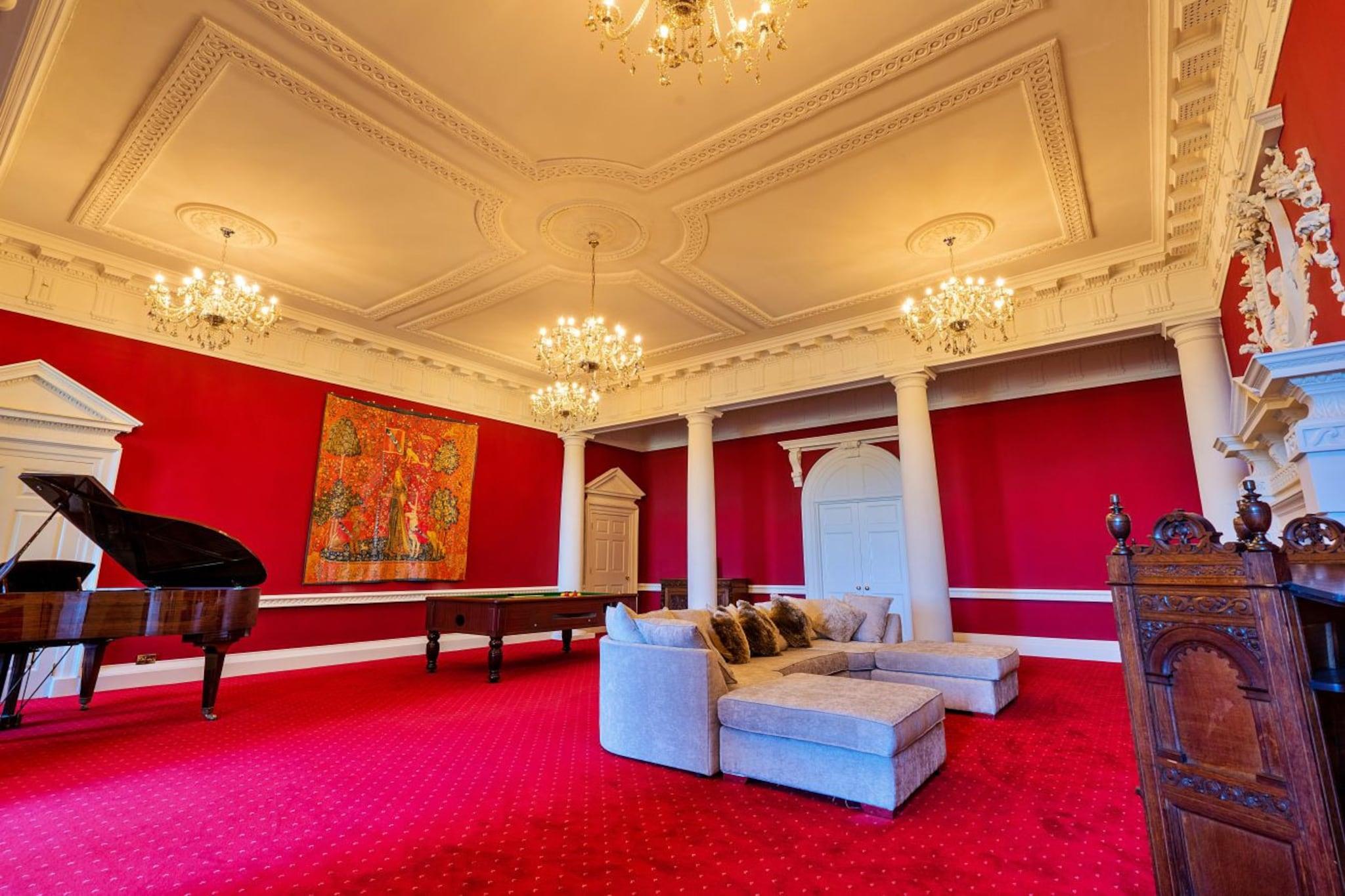 Omfavn et ekstraordinært ophold i en fredet georgiansk hal, beliggende i maleriske haver og grunde i den dejlige landsby Hickleton, South Yorkshire. Denne historiske ejendom, der blev bygget i 1748, har en rig fortid, der tjener forskellige roller, herunder et hovedkvarter under Anden Verdenskrig og senere som en pigeinternat. I dag er det blevet smukt renoveret for at tilbyde rummelige, karakterfyldte boliger for op til ni gæster med adgang til en del af de fantastiske 17 hektar med haver og skov. Når du nærmer dig hallen via den fejende indkørsel, skal du bruge et øjeblik på at værdsætte storheden ved denne bemærkelsesværdige ejendom. Når du træder ind, vil du finde et elegant kapel-soveværelse med et glasloft, der inviterer til smuk udsigt over himlen og naturligt lys, hvilket øjeblikkeligt skaber en indbydende atmosfære. Oplev hallens historiske charme gennem originale malerier og gobeliner, der gentager historierne fra dens fortid. I den nederste etage venter to king-size soveværelser og et separat badeværelse med bruser, mens en bred korridor fører dig til et tekøkken udstyret med det nødvendige til at tilberede lette måltider under dit ophold. Den indbydende lounge og spillelokale er perfekt til familiesammenkomster, der tilbyder underholdning med klaver, poolbord, smart-tv og Wi-Fi. Et tilstødende soveværelse har en fantastisk himmelseng i kingsize-seng, der tilføjer et strejf af luksus til dit ophold. Med sin fascinerende historie som optagelsessted for forskellige tv-programmer og dokumentarfilm, er denne statelige sal ikke bare et sted at bo, men et stykke af Doncasters arv, der venter på, at du kan udforske og nyde. Tag dine kæledyr med på eventyret, og oplev de fængslende omgivelser i dette enestående tilflugtssted.