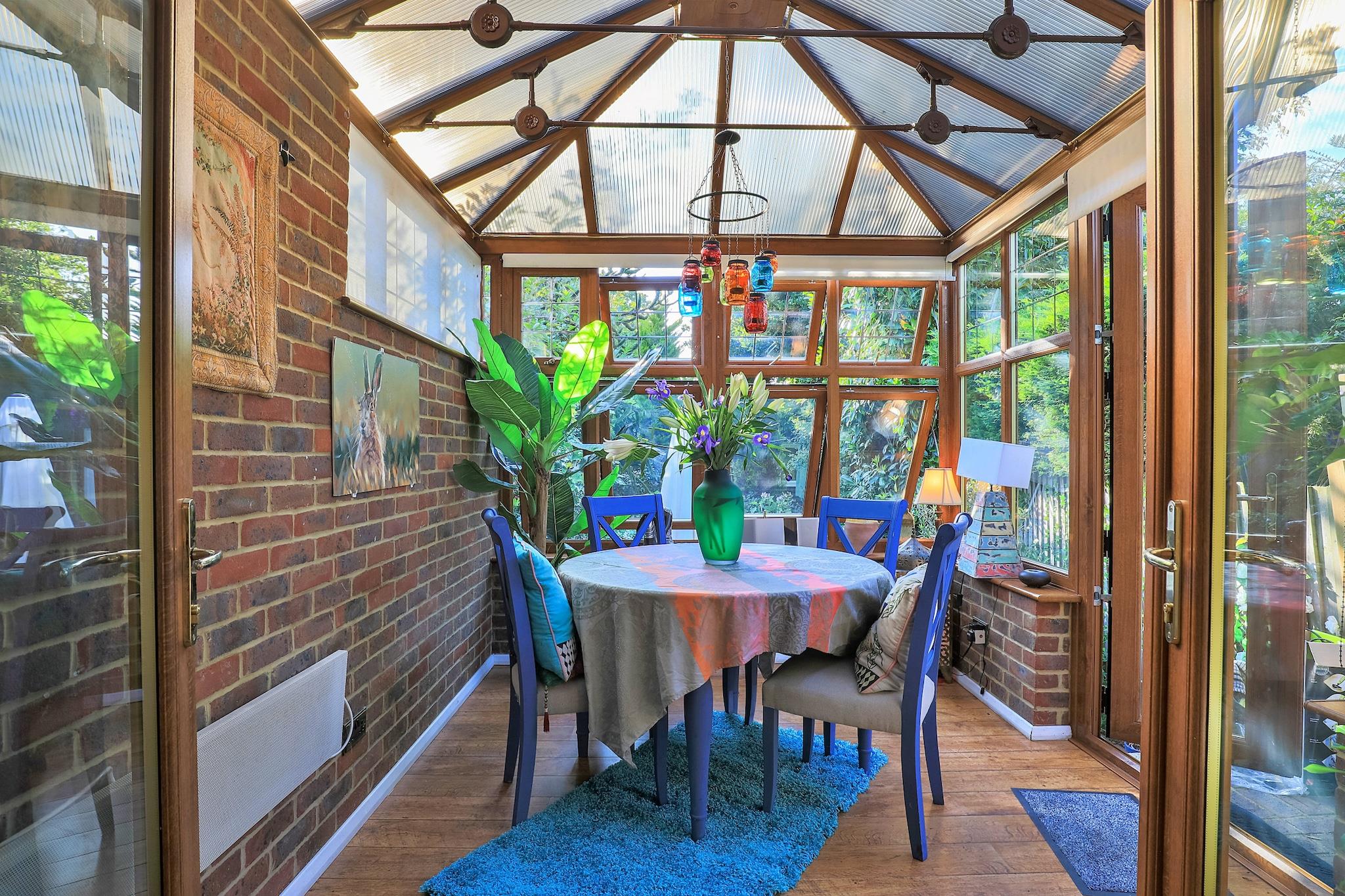 Beliggende i hjertet af Surrey, tilbyder dette fortryllende to-værelses oase i den maleriske landsby Dormansland en perfekt flugt for dem, der søger både ro og eventyr. Med nem adgang til det centrale London via nærliggende togstationer og kun en kort 20-minutters kørsel til London Gatwick, vil du finde dig selv i en ideel beliggenhed til at udforske både det travle byliv og det fredfyldte landskab. Med plads til op til fire gæster, kombinerer dette hjem smukt eklektisk kunstnerskab med moderne komfort, hvilket sikrer, at hvert øjeblik tilbragt her er mindeværdigt. Når du træder ind, byder den indbydende lounge dig velkommen med overdådige møbler og det beroligende skær fra en brændeovn, hvilket skaber en hyggelig atmosfære perfekt til afslapning. Bliv forbundet og underholdt med smart-tv og gratis Wi-Fi, eller slap blot af med en god bog. Et moderne køkken flyder problemfrit fra loungen med alt hvad du behøver for at lave lækre måltider under dit ophold. Et højdepunkt ved ejendommen er den charmerende spisestue i vinterhaven, hvor naturligt lys strømmer ind og forbedrer dine måltider, mens du nyder en dejlig udsigt over den frodige have. På solrige dage kan du gå udenfor for at nyde udendørs spisning i rolige udendørs omgivelser. Med en hjemmelignende atmosfære opfordrer dette tilflugtssted dig til at slappe af og skabe forbindelser med dine kære. Blot en afslappet 20-minutters gåtur vil tage dig til den lokale togstation, som giver nem adgang til den pulserende by London. Udforsk de nærliggende pubber, der tilbyder lækker mad, besøg historiske Hever Castle & Gardens, eller nyd en afslappet runde på den lokale golfbane. Med sin ideelle beliggenhed - 40 minutter fra sydkysten og 50 minutter fra Brighton - er dette tilflugtssted en perfekt base for dine udforskninger. Parkering til ét køretøj er bekvemt inkluderet på indkørslen, hvilket gør dit ophold endnu mere ubesværet.