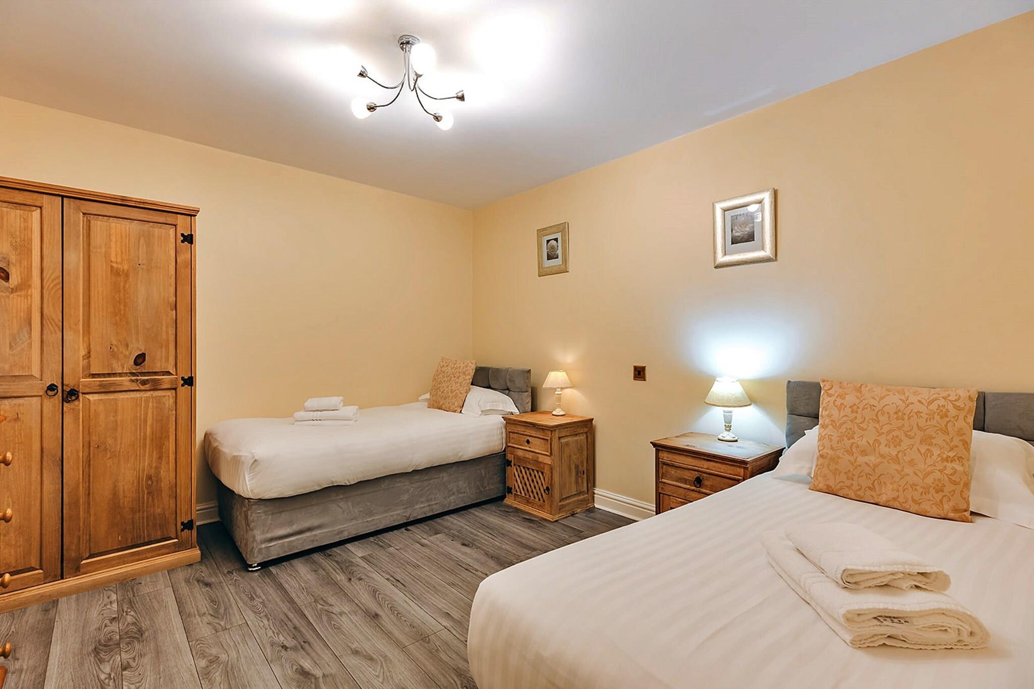Dette charmerende og veludstyrede 2-værelses sommerhus tilbyder et fredeligt tilflugtssted for op til fire gæster. Den har en dobbeltseng i soveværelset og to enkeltsenge i det andet soveværelse, hvilket gør den ideel til familier eller små grupper. Ejendommen er kæledyrsvenlig, så du kan medbringe dine lodne ledsagere mod et ekstra gebyr. Gæsterne kan nyde en række faciliteter, herunder gratis Wi-Fi, et fladskærms-tv og privat parkering. Det rummelige opholdsområde giver også komfortable siddepladser til afslapning efter en dag med udendørs aktiviteter. Sommerhuset tilbyder en dejlig blanding af moderne bekvemmelighed og hyggelig stemning, med den ekstra fordel af adgang til nærliggende vandrestier og rekreative områder. Beliggende på maleriske grunde tilbyder dette feriehus en fredfyldt flugt, mens det stadig er tæt på nærliggende attraktioner. Gæsterne kan udforske det omkringliggende landskab, deltage i udendørs eventyr eller besøge lokale kulturelle steder. Ejendommen er godt forbundet til transportforbindelser, med nærliggende busstationer, togstationer og lufthavne, der giver nem adgang for dem, der ankommer med offentlig transport. Det omkringliggende område byder også på charmerende caféer, restauranter og lokale markeder, hvilket gør det til et ideelt sted for at opdage lokal kultur og køkken. Hyttens fuldt udstyrede køkken sikrer, at gæsterne nemt kan nyde hjemmelavede måltider, komplet med moderne apparater og rigelig bordpladeplads. Spisepladsen ved siden af ??køkkenet er perfekt til familiens måltider. Det velindrettede badeværelse byder på væsentlige bekvemmeligheder, og med varme inkluderet kan gæsterne nyde et behageligt ophold uanset årstiden. Ejendommen tilbyder også linned, håndklæder og slutrengøring, hvilket bidrager til den generelle bekvemmelighed ved opholdet.
