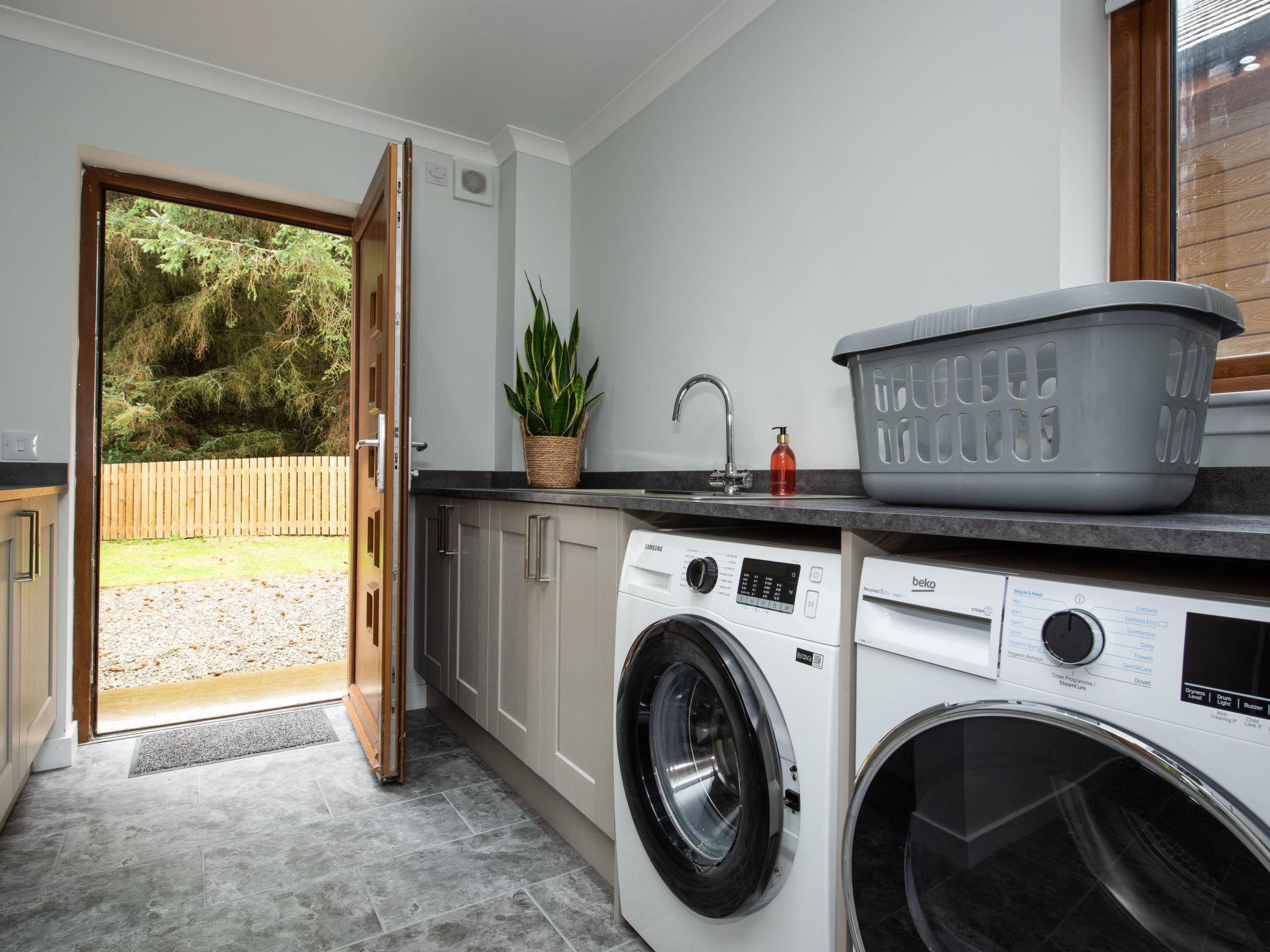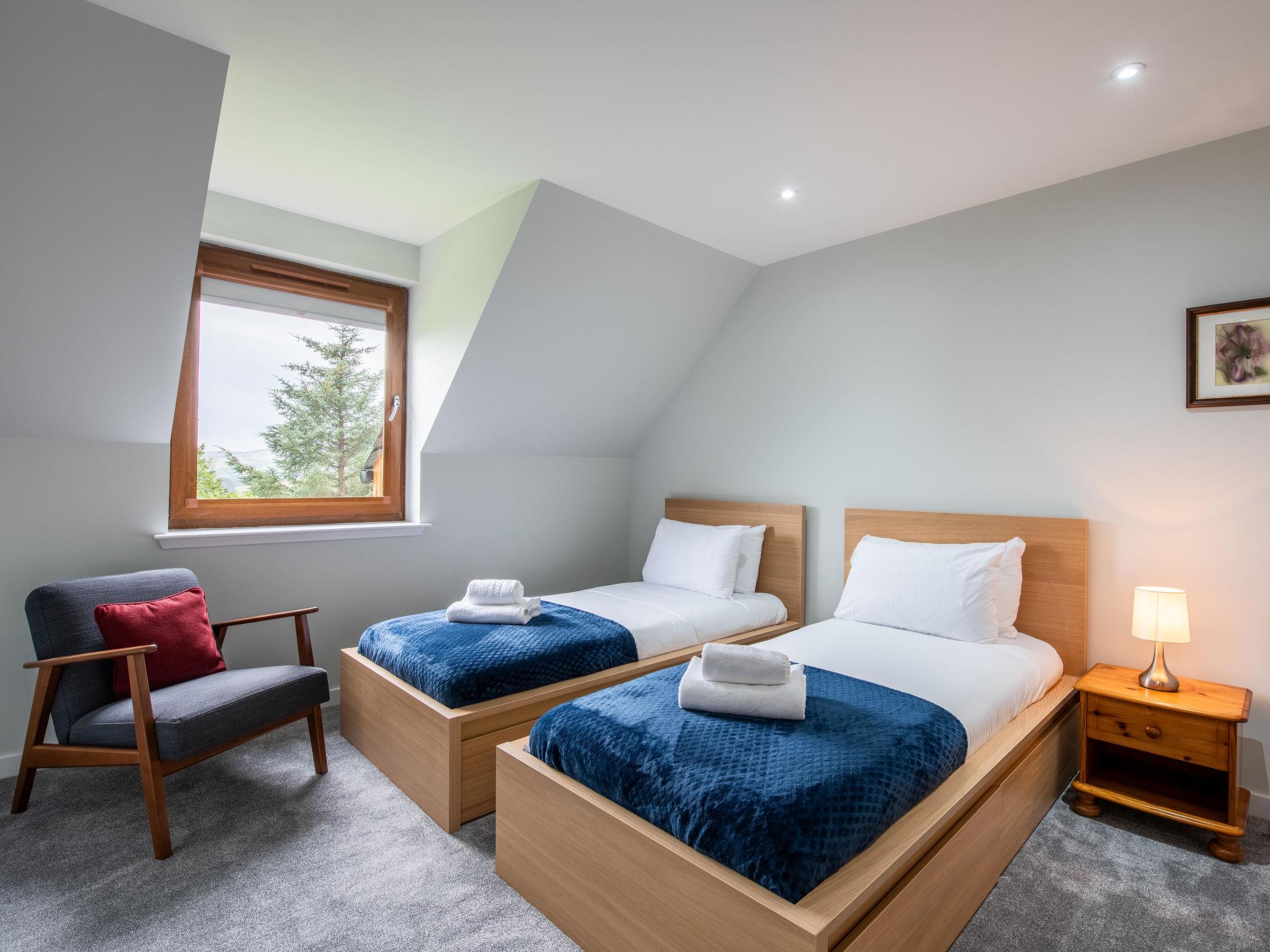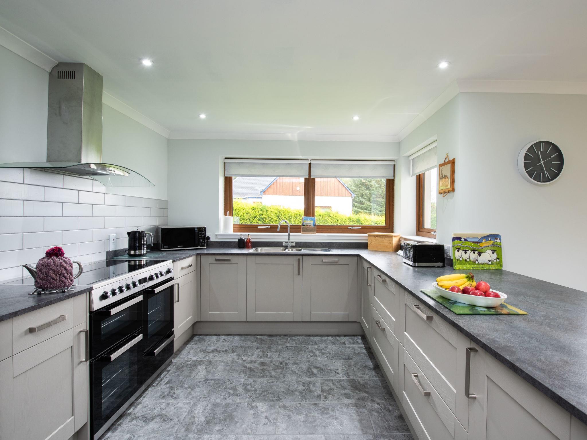 Modern, beautiful house "Springbank Lodge", 2 storeys, built in 2023. 2 km from the centre of Drumnadrochit, in a secluded, quiet position, 700 m from the lake. Private: large terraced garden with lawn. Pre-arrival grocery service. 4x4 car recommended in winter. Parking at the house. Shop 2 km, grocery 2 km, supermarket 20 km, shopping centre 20 km, restaurant, bar 900 m, bakery 2 km, café 1 km, bus stop "Post Office" 5 km. Golf course (18 hole) 20 km, riding stable 35 km. Nearby attractions: Urquhart Castle 4 km, Loch Ness Exhibition Centre 1 km, Plodda falls 30 km, Fort Augustus 30 km, Jacobite Boat Trips 5 km, Culloden Battlefield 33 km. Well-known lakes can easily be reached: Loch Ness 2 km, Loch Affric 42 km, Loch Meiklie 8 km. Hiking paths: Great Glen Way 1 km, Abriachan Forest 14 km, Meall Fuar-mhonaidh 20 km. Please note: car recommended. Suitable for families.