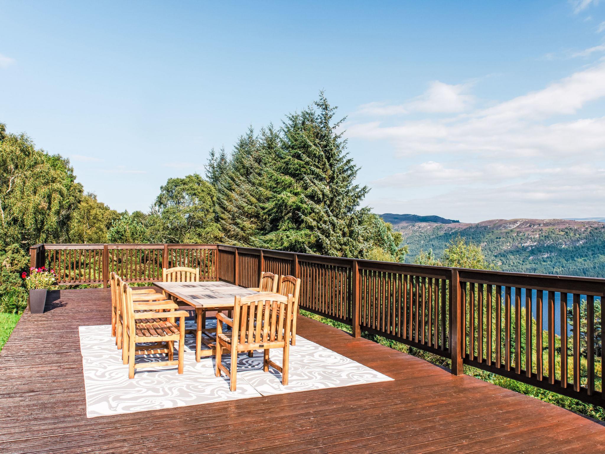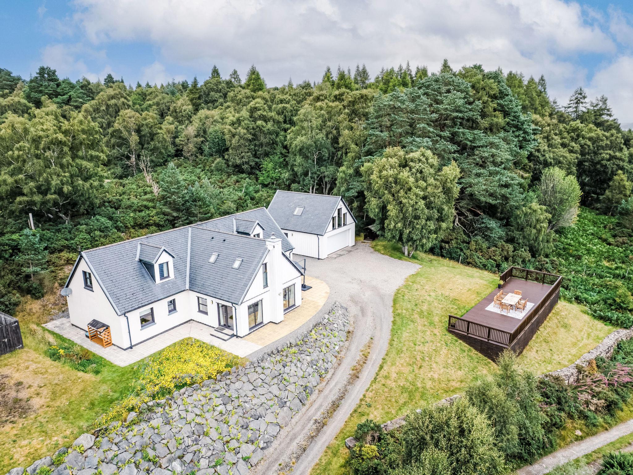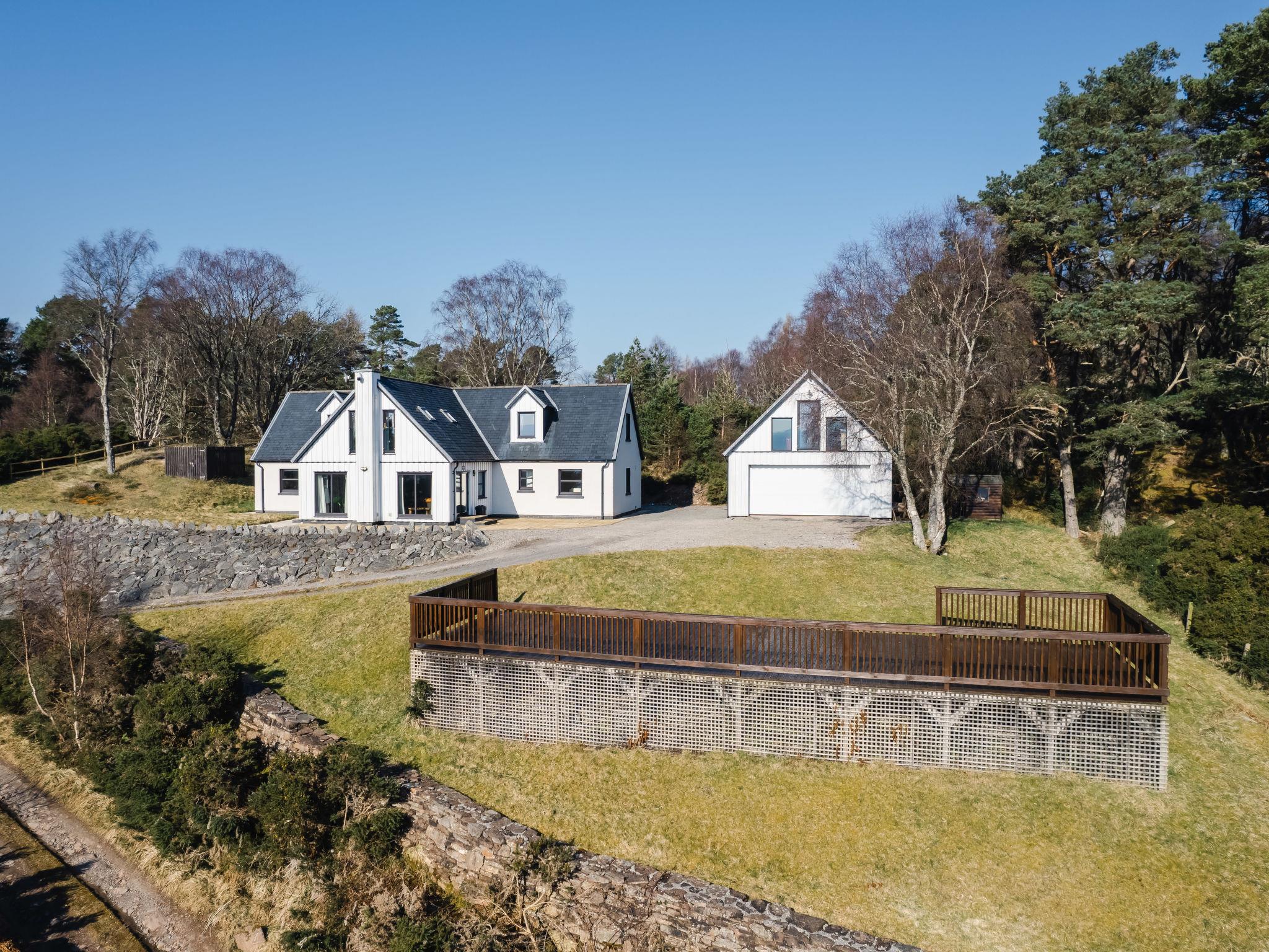 Beautiful, luxurious villa "Drover's Lodge", 2 storeys, detached, surrounded by trees and meadows. On the outskirts, 3.5 km from the centre of Drumnadrochit, in a secluded, quiet, elevated position on top of a hill, 3.5 km from the lake. Private: large garden (not fenced) lawn. Patio, terrace, garden furniture. Pre-arrival grocery service. 250 m long narrow motor access. 4x4 car recommended in winter. Parking at the house. Shop 4 km, grocery 4 km, supermarket 25 km, shopping centre 25 km, restaurant 3 km, bar 3 km, bakery 1 km, café 4 km, bus stop "Loch Ness Inn" 3 km. Golf course (18 hole) 20 km. Nearby attractions: Urquhart Castle 5 km, Loch Ness 3 km, Loch Ness Exhibition Centre 4 km, Fort Augustus 30 km, Jacobite Boat Trips 4 km. Hiking paths: Great Glen Way 100 m. Please note: car recommended.