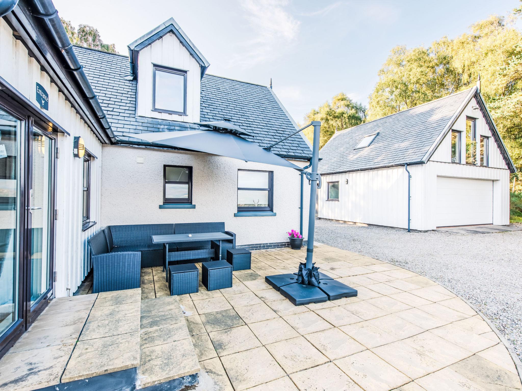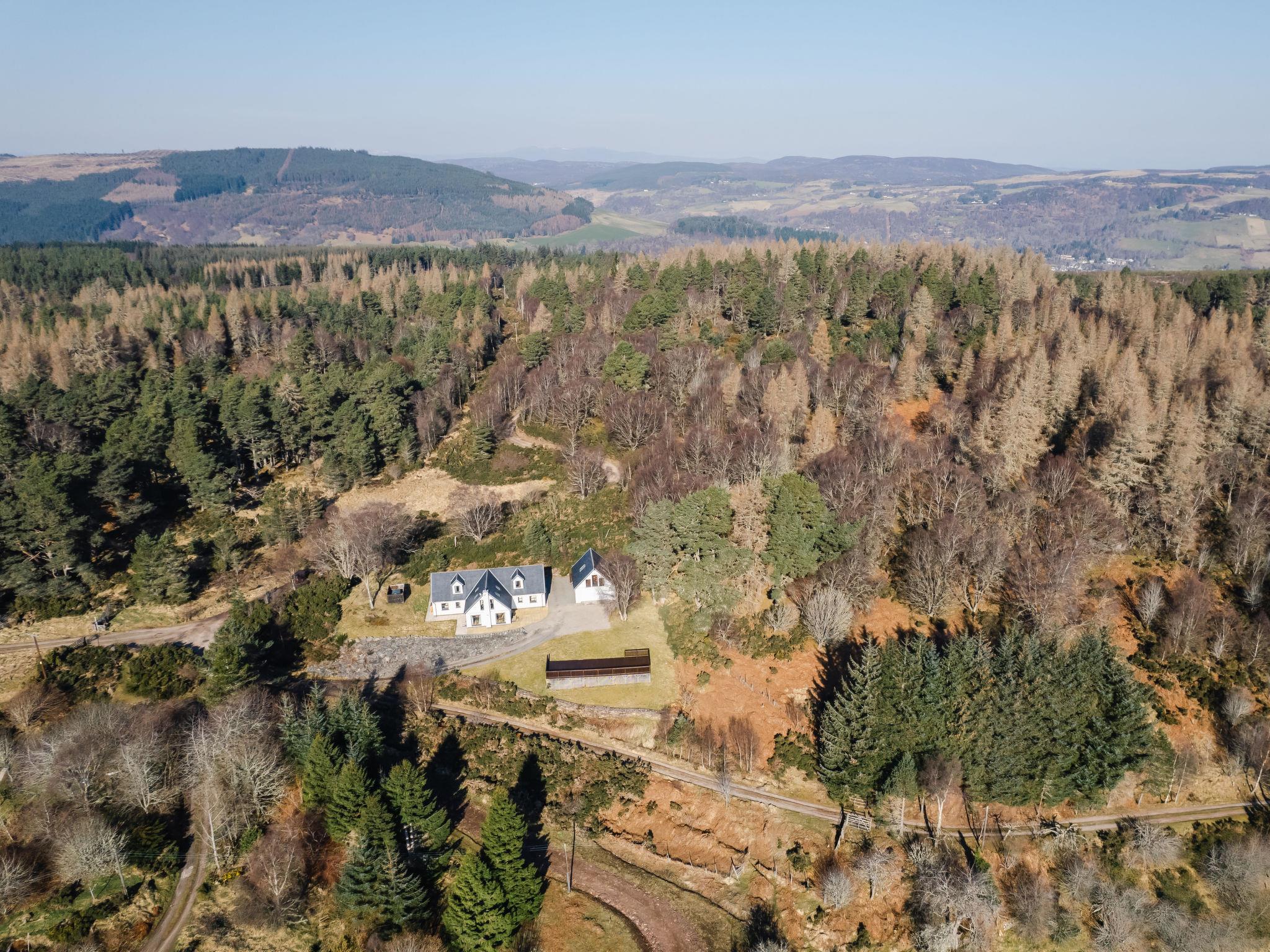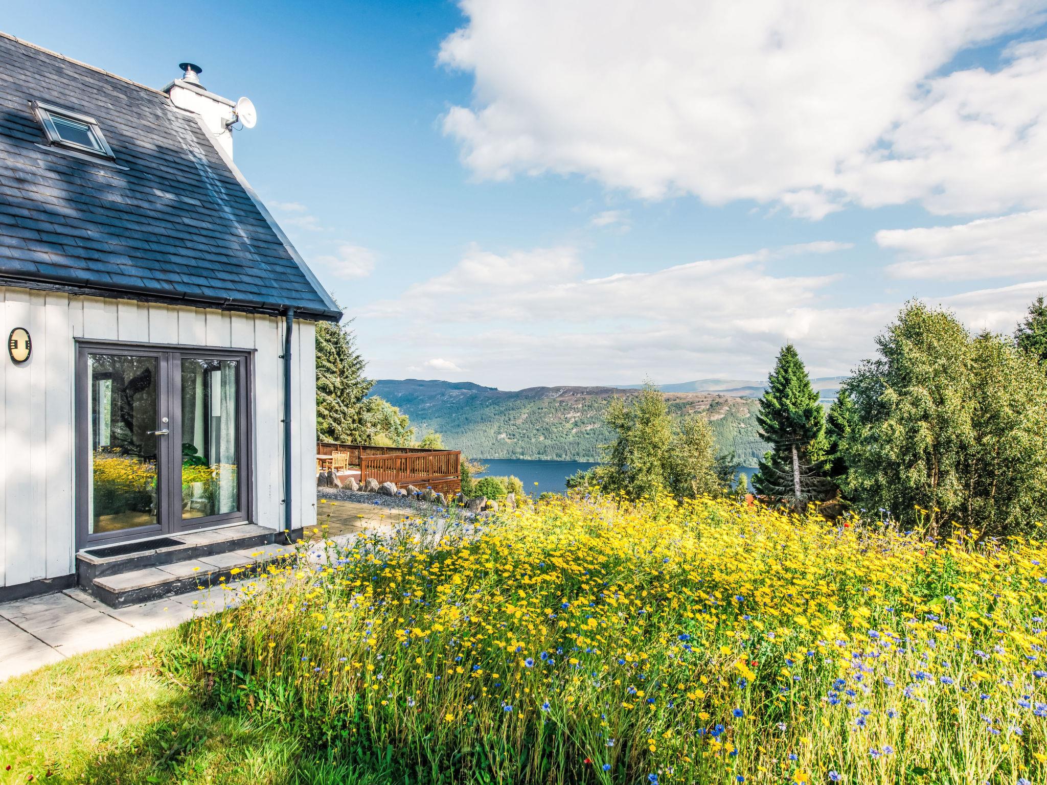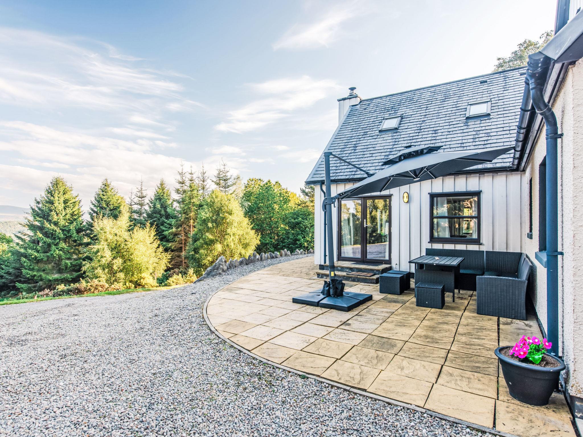 Beautiful, luxurious villa "Drover's Lodge", 2 storeys, detached, surrounded by trees and meadows. On the outskirts, 3.5 km from the centre of Drumnadrochit, in a secluded, quiet, elevated position on top of a hill, 3.5 km from the lake. Private: large garden (not fenced) lawn. Patio, terrace, garden furniture. Pre-arrival grocery service. 250 m long narrow motor access. 4x4 car recommended in winter. Parking at the house. Shop 4 km, grocery 4 km, supermarket 25 km, shopping centre 25 km, restaurant 3 km, bar 3 km, bakery 1 km, café 4 km, bus stop "Loch Ness Inn" 3 km. Golf course (18 hole) 20 km. Nearby attractions: Urquhart Castle 5 km, Loch Ness 3 km, Loch Ness Exhibition Centre 4 km, Fort Augustus 30 km, Jacobite Boat Trips 4 km. Hiking paths: Great Glen Way 100 m. Please note: car recommended.
