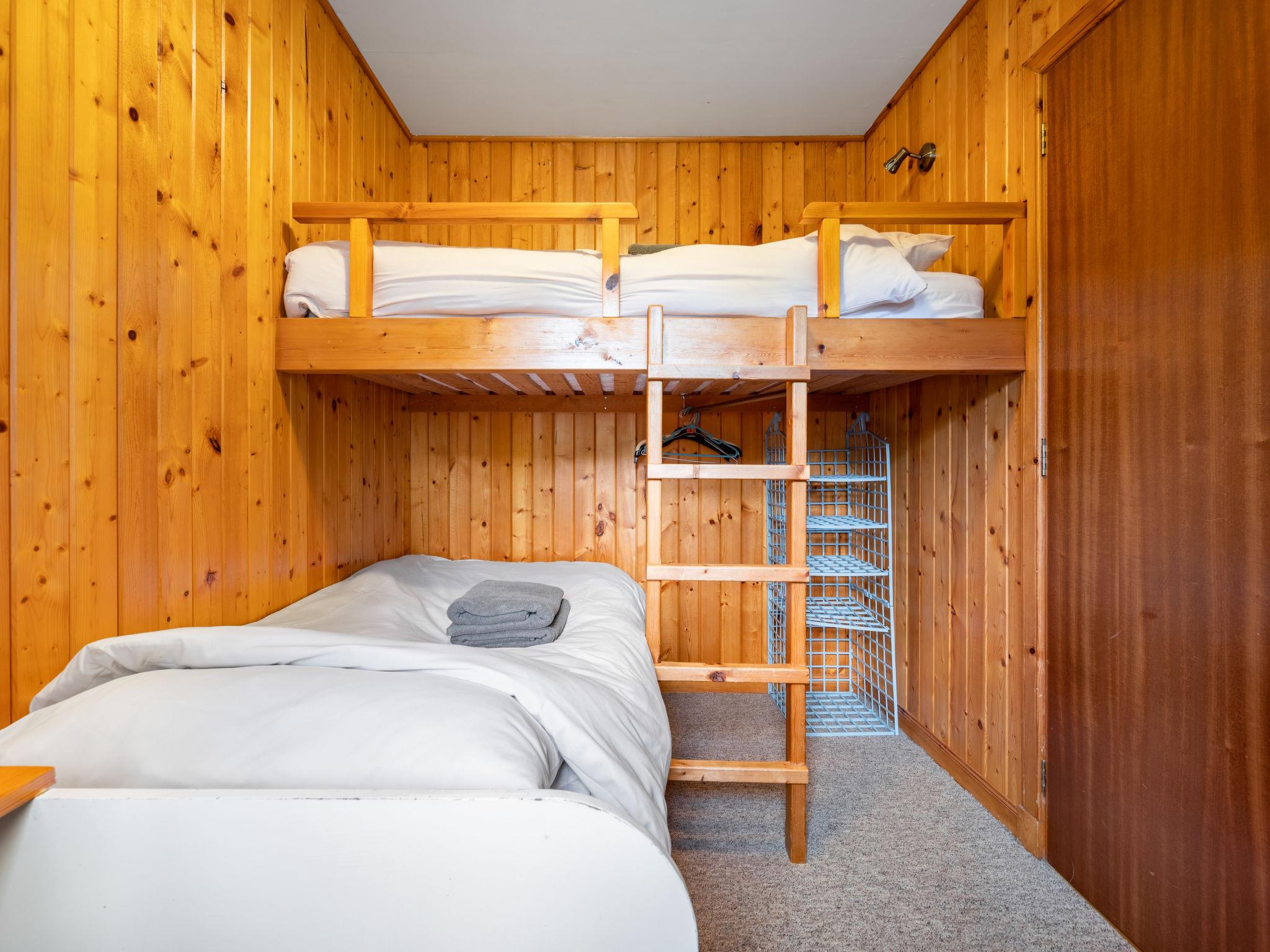 4-room chalet 70 m2. Simple and cosy furnishings: open living/dining room with dining table and TV (flat screen), DVD. 1 double bedroom with 1 double bed. 1 double bedroom with 2 beds. 1 room with 1 x 2 bunk beds. Open kitchen (4 hot plates, oven, microwave). Bath/shower/WC. Electric heating. Facilities: washing machine, children's high chair, baby cot for up to 2 year olds (extra). Internet (WiFi, free). Parking (2 cars) at the house. Please note: suitable for families. Non-smoking house. Maximum 2 pets/ dogs allowed. TV only EN. Heating and hot water are payable with a coin operated meter. HI-50159-F