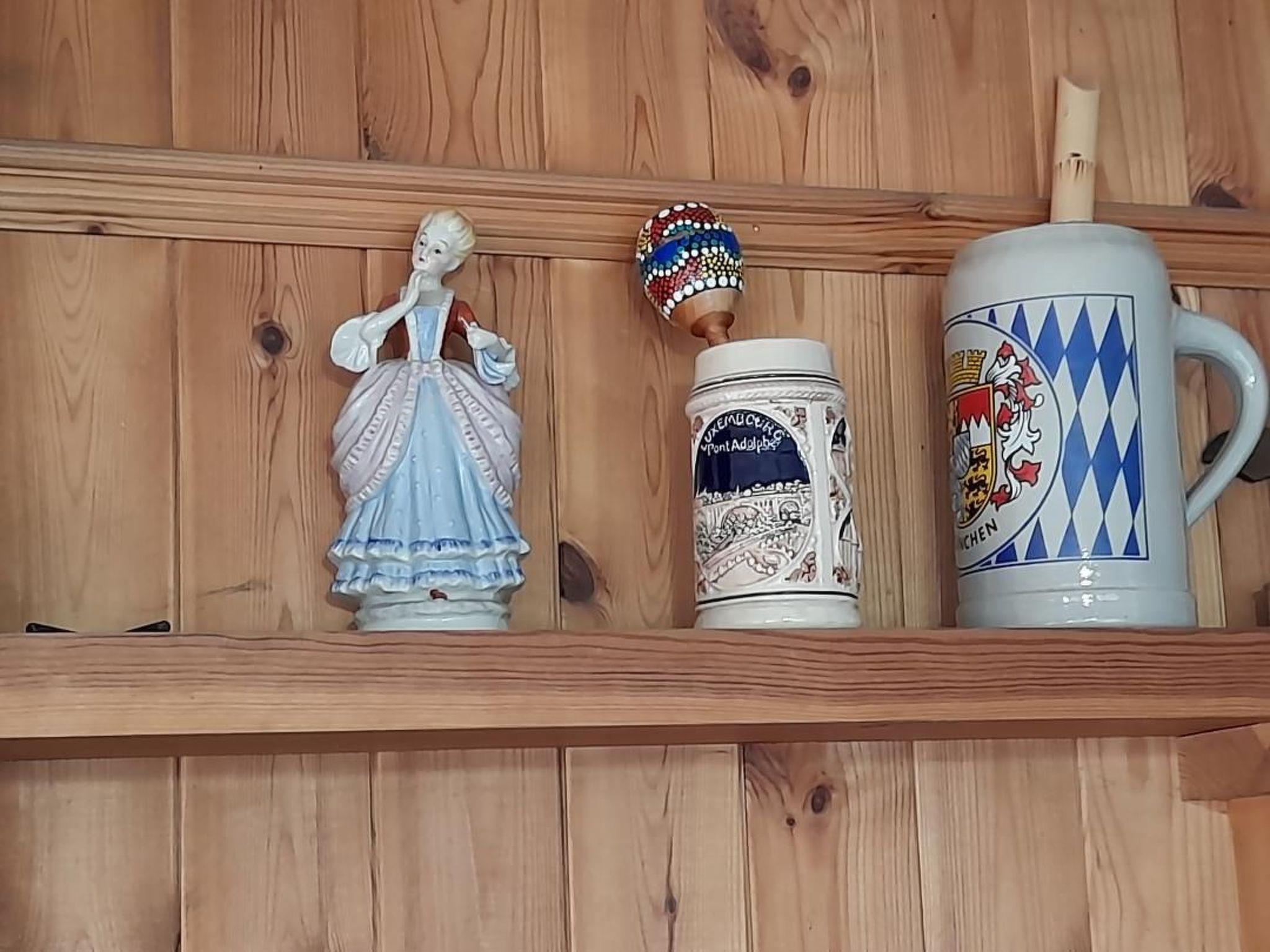 The two storey house of around 134m² with modern furnishing accommodates up to six people. On the ground floor, you will find the living room with a fireplace stove. The walls are covered by wood panelling, made by a local carpenter, exuding cosiness. Make yourselves comfortable in the armchairs and enjoy entertainment provided by the satellite TV (English and German channels), Wi-Fi and a piano. The spacious kitchen with a dining nook is equipped with a dishwasher, a washing machine and a very large fridge/freezer. There is also a wide sofa, where you can relax. Additionally, you will find a bedroom with an ensuite bathroom on the ground floor. The other bedrooms and a large bathroom with a bathtub and a shower are located on the upper floor. The two large bedrooms are furnished with a double bed each (specially made). Each of the rooms also has a single bed, for children. There are two clothes stands and some washing lines for drying laundry. Some are under the balcony, so they can also be used on wet days.