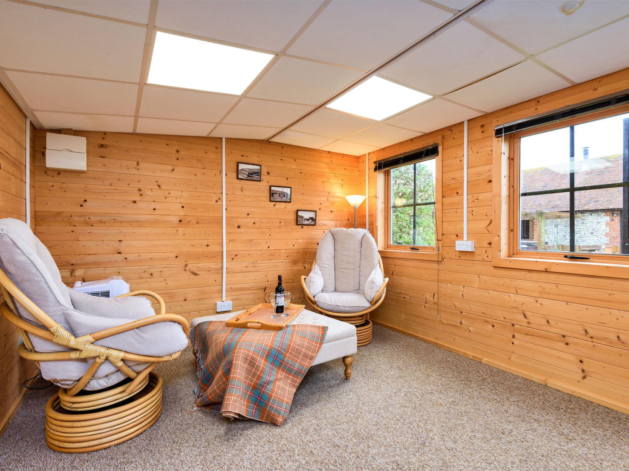 "Flint Barn", 3-room house 69 m2. Object suitable for 4 adults. Living room with open-hearth fireplace. 1 room with 1 french bed. 1 room with 1 double bed. Kitchen (oven, toaster, kettle, microwave, freezer, electric coffee machine). Shower/WC. Barbecue. View of the garden. Facilities: washing machine. Internet (WiFi, free). Parking (2 cars). Please note: non-smokers only.