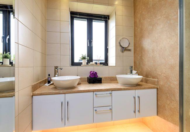 Retire to one of two generously appointed bedrooms, with plush king and double beds and a smart TV for entertainment at your fingertips. The luxurious bathroom includes a double shower, heated towel rail, and toilet, offering peaceful relaxation. Outside, the enclosed rear garden provides a haven of peace with garden furniture, a summerhouse, and a BBQ for endless enjoyment. Private parking for three cars ensures convenience and ease of access.