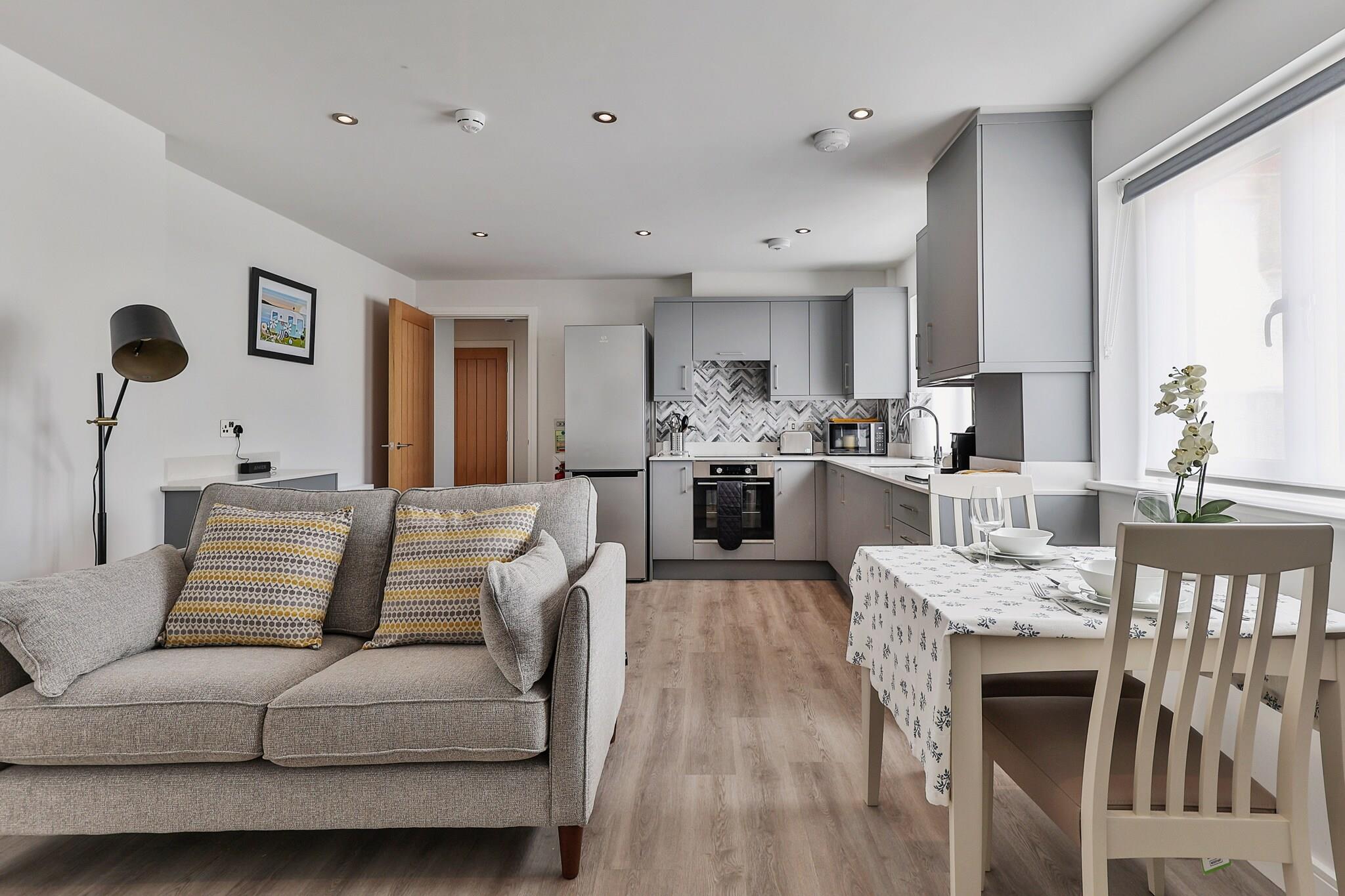 I hjertet af Filey, kun en kort gåtur fra det gyldne sand og det glitrende hav, tilbyder denne splinternye ferielejlighed det perfekte romantiske tilflugtssted for par, der søger både komfort og eventyr. Med charmerende butikker, dejlige caféer og indbydende restauranter lige rundt om hjørnet, har du alle bekvemmeligheder lige ved hånden, sammen med den ekstra bekvemmelighed med gratis tildelt parkering. Den intime stemning og kæledyrsvenlige politik forstærker appellen yderligere for par, der ønsker at tage deres lodne ven med på rejsen. Lejligheden i stueetagen er designet med en åben planløsning og er lys, rummelig og luftig, hvilket gør den til et ideelt tilflugtssted for afslapning efter en dag brugt på udforskning. Det hyggelige opholdsområde har komfortable sofaer og et vægmonteret fladskærms-tv, hvilket skaber en varm atmosfære til at putte sig sammen med din elskede eller nyde en sjov spilleaften med medfølgende brætspil. Et stilfuldt køkken, fuldt udstyret til dine kulinariske behov, giver dig mulighed for at forberede alt fra afslappet morgenmad til romantiske middage. Forbedringer som en Nespresso-maskine sikrer, at dine morgener starter perfekt, så du kan nippe til din kaffe, mens du planlægger dagen forude. Mens den smukke strand er et vigtigt højdepunkt i Filey, lokker en række lokale attraktioner dig til at udforske området. Knap 1,6 km væk finder du Glen Gardens, et ideelt sted for en afslappet eftermiddagstur blandt naturskønne parkområder og haver, eller endda en runde eventyrgolf. For naturelskere byder den nærliggende Flamborough Headland Heritage Coast på spektakulære muligheder for at se fugle med det imponerende syn af lunder og suler, der reder på de dramatiske klipper. Den pulserende by Scarborough ligger blot 20 minutters kørsel væk, hvor du kan fordybe jer i kultur på Rotunda Museum eller udforske det historiske Scarborough Castle. Med en blanding af afslapning og eventyr lige uden for døren er denne charmerende lejlighed et ideelt valg til din næste romantiske flugt.