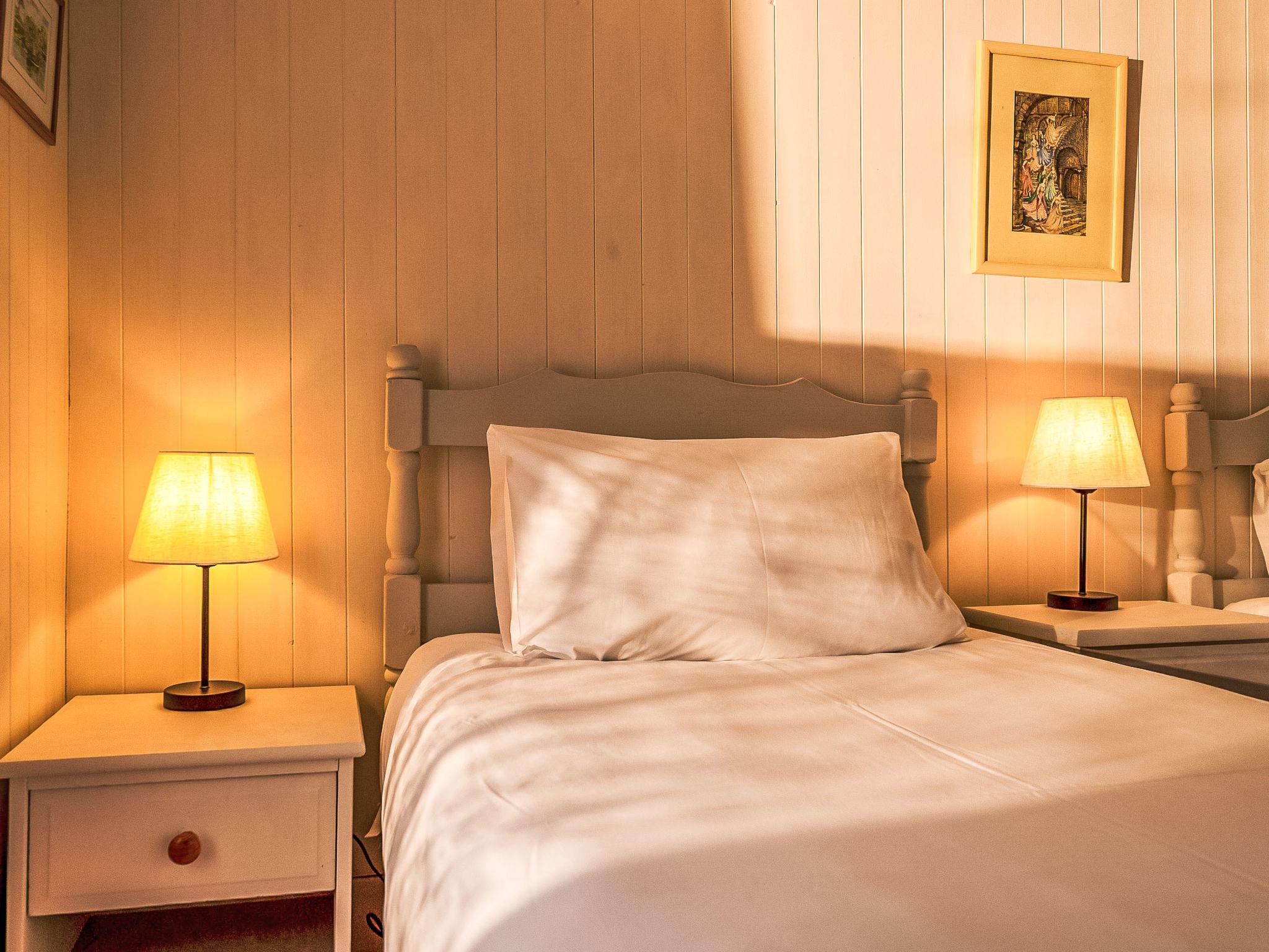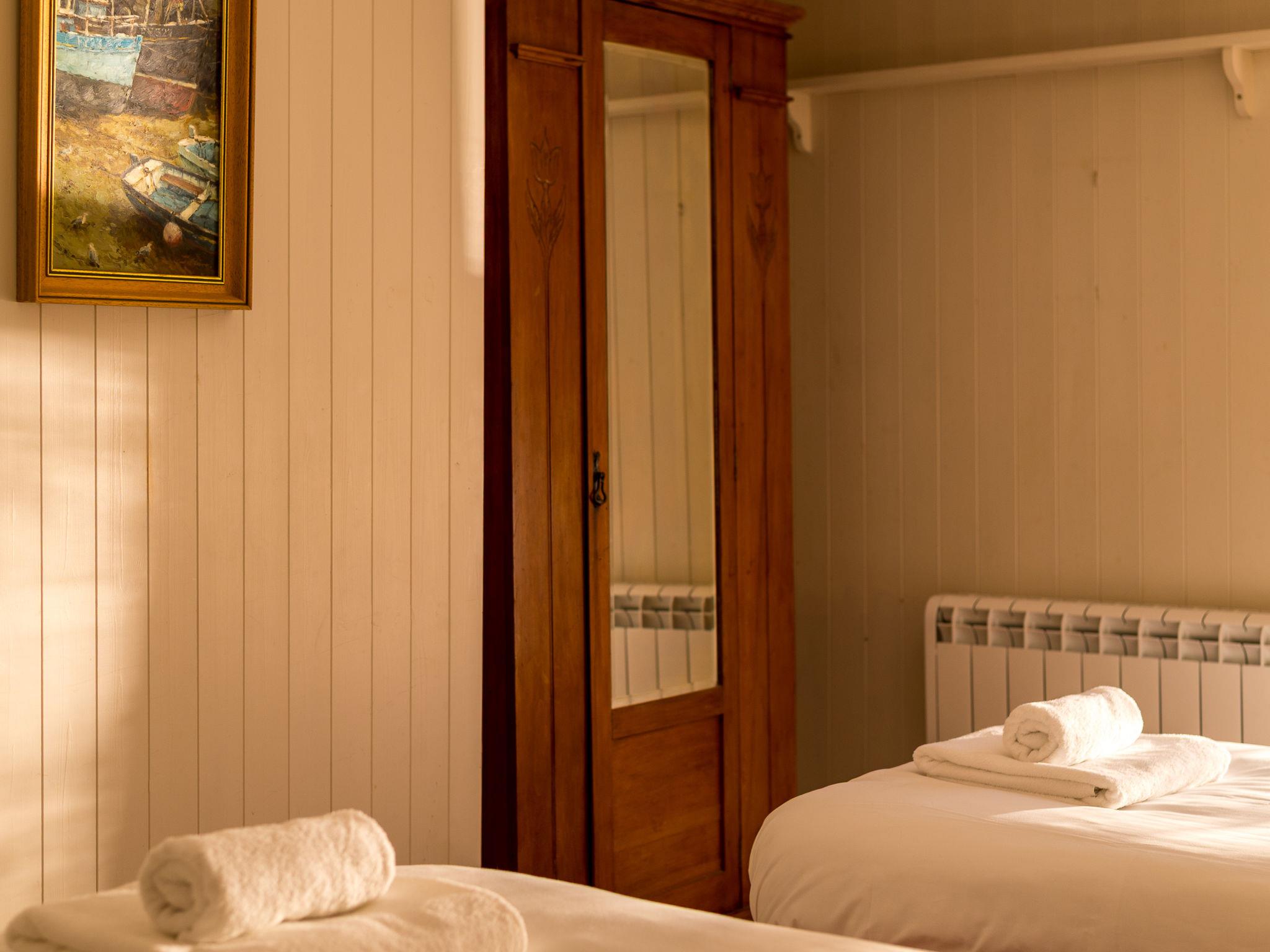 "Zion", 3-room cottage on 2 levels. Tasteful and cosy furnishings: 1 double bedroom with 1 double bed. 1 room with 2 beds (90 cm, length 190 cm), 1 x 2 bunk beds (75 cm, length 175 cm). Kitchen (oven, dishwasher, 4 ceramic glass hob hotplates, toaster, kettle, microwave, freezer) with dining table. On the lower ground floor: large living room with TV. Shower/WC. Electric heating. Facilities: washing machine, dryer. Internet (WiFi, free). Please note: smoke alarm.