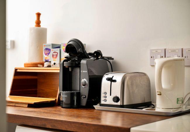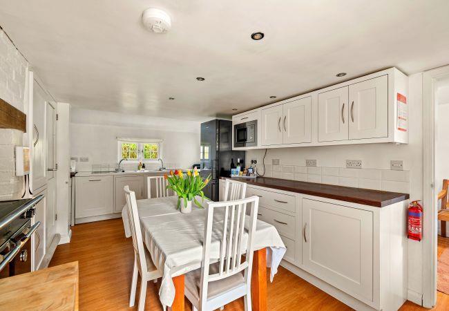 On the ground floor, you'll find a warm and welcoming living room complete with a TV, DVD player, and a comfortable double sofa bed—perfect for curling up after a day of countryside adventures. The spacious kitchen and dining area is fully equipped with an electric range, microwave, fridge/freezer, dishwasher, and washing machine, making mealtimes a breeze whether you're cooking from scratch or enjoying local produce.