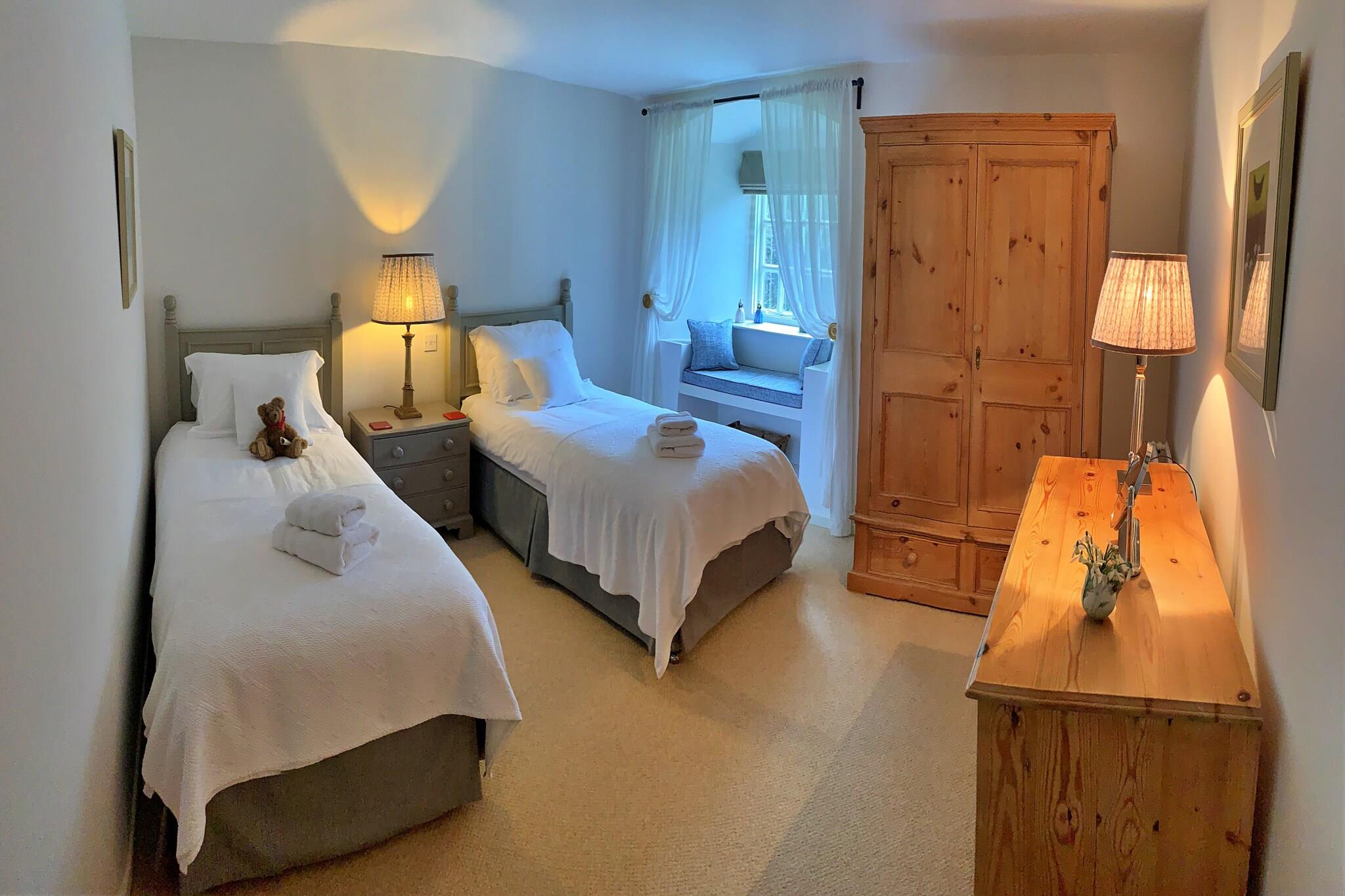 Dette charmerende og veludstyrede feriehus tilbyder et hyggeligt og behageligt tilflugtssted for op til fire gæster. Ejendommen har et hovedsoveværelse med en kingsize-seng og et andet soveværelse med to enkeltsenge, og er ideel til små familier eller grupper. Det er kæledyrsvenligt, så dine lodne ledsagere kan slutte sig til dig. Den rummelige stue har en sofa, der giver et hyggeligt sted at slappe af, og et fladskærms-tv til underholdning. Gæsterne kan nyde den naturskønne udsigt fra den private balkon, hvilket tilføjer et strejf af ro til deres ophold. Ejendommen tilbyder også gratis trådløs internetadgang, og forskellige udendørs aktiviteter såsom vandrestier og haver er gratis tilgængelige. Parkering tilbydes på stedet for nemheds skyld. Beliggende i et roligt område, er feriehuset kun en kort gåtur fra den lokale bymidte, hvor gæsterne kan udforske charmerende caféer, butikker og markeder. For dem, der er interesserede i udendørs eventyr, byder det omkringliggende landskab på smukke vandremuligheder. Nærliggende transportmuligheder omfatter et busstoppested inden for gåafstand og en togstation kun en kort køretur væk, hvilket gør det nemt at udforske den omkringliggende region. Ejendommen ligger også inden for en rimelig afstand fra lokale attraktioner, herunder museer og naturskønne udsigtspunkter. Det velindrettede køkken tilbyder alle de nødvendige faciliteter til selvforplejning, herunder en mikrobølgeovn, ovn, køleskab og opvaskemaskine. Det rummelige badeværelse er udstyret med bruser og badekar, der tilbyder en afslappende oplevelse efter en dag med udforskning. Andre faciliteter inkluderer varme og aircondition for komfort året rundt, og en vaskemaskine for ekstra bekvemmelighed. Med alt hvad du behøver for at føle dig hjemme, sikrer denne ejendom et behageligt og behageligt ophold.