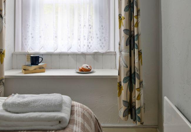 The kitchen sits to the rear of the cottage and is well stocked with all the appliances one would require to rustle up a meal, yet The Boot & Shoe Inn is but round the corner if you wish to be dined. Up the staircase are the two bedrooms and family bathroom. The master bedroom has a double sized bed and quiet street views. The family bathroom has a shower and bath so guests can have an invigorating shower or enjoy a long soak to unwind while on holiday.