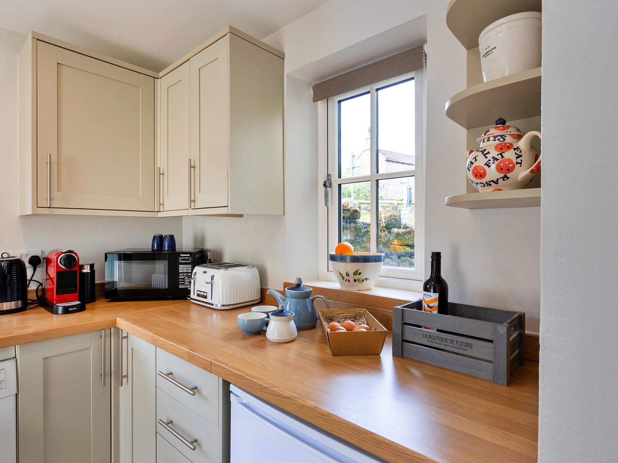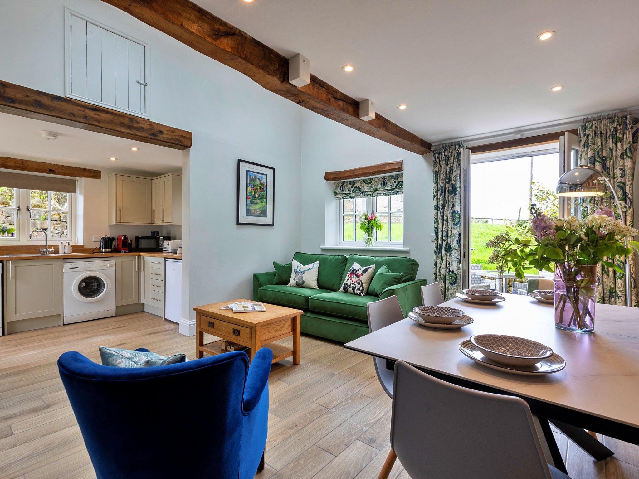 "Cherry Cottage Nr Grantley Hall", 3-room house 120 m2, on the ground floor. Object suitable for 4 adults. Living room. 1 room with 1 french bed. 1 room with 1 double bed. Kitchen (oven, dishwasher, toaster, kettle, microwave, electric coffee machine). Shower/WC. Facilities: washing machine. Internet (WiFi, free). Parking (2 cars) at the house. Please note: non-smokers only. 1 pet/ dog allowed. Smoke alarm.