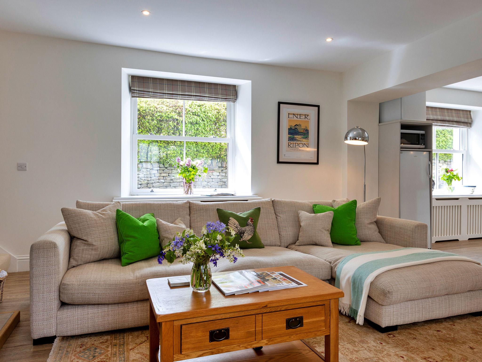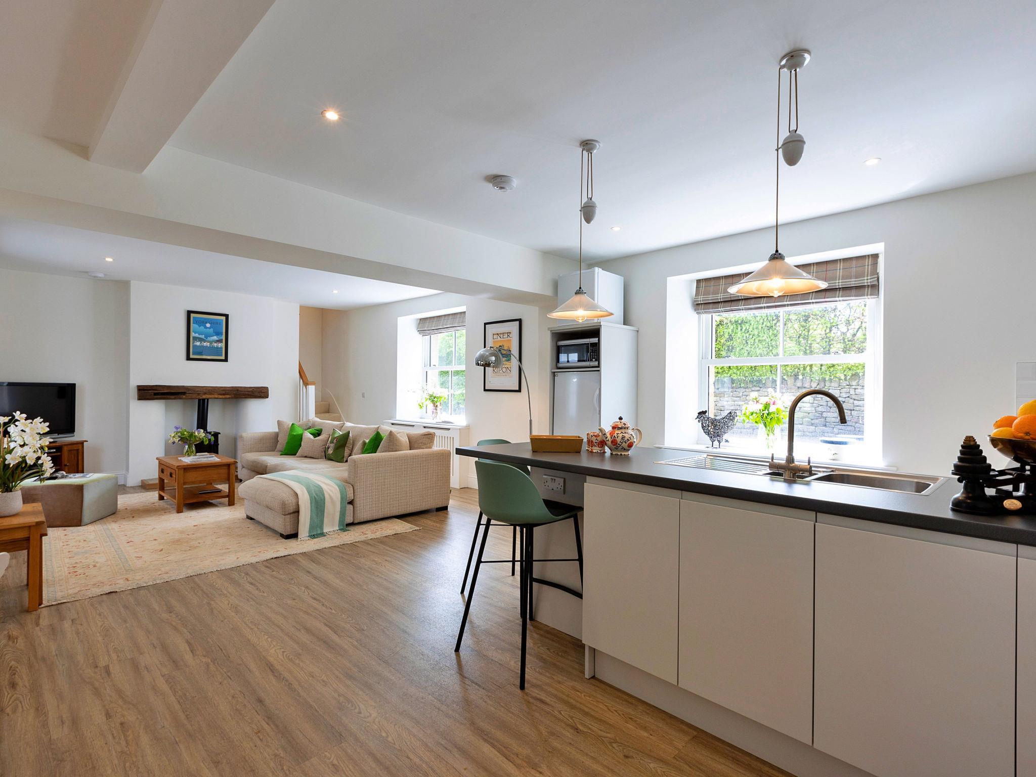 "The Old Estate Office Nr Grantley Hall", 2-room house 100 m2. Object suitable for 2 adults. Living room with open-hearth fireplace. 1 room with 1 french bed. Kitchen (oven, dishwasher, toaster, kettle, microwave). Shower/WC. Balcony. Facilities: washing machine. Internet (WiFi, free). Parking (1 car) at the house. Please note: non-smokers only. 1 pet/ dog allowed. Smoke alarm.