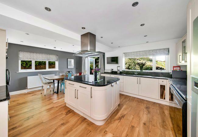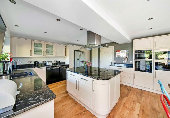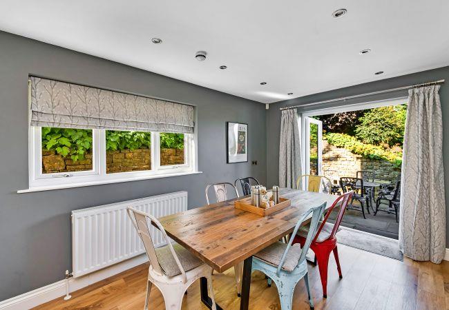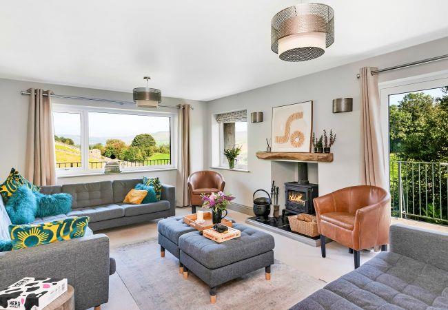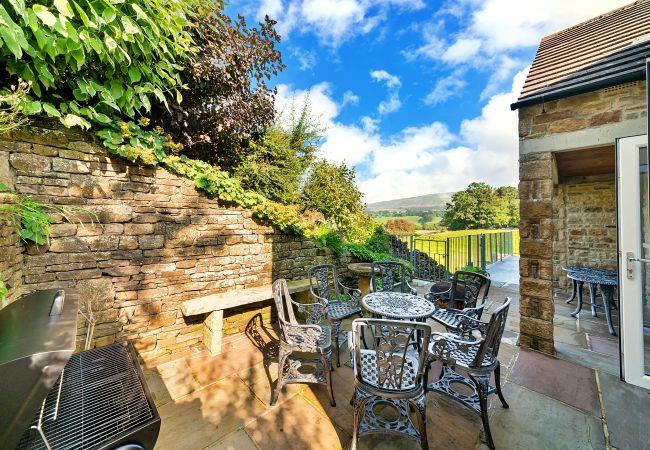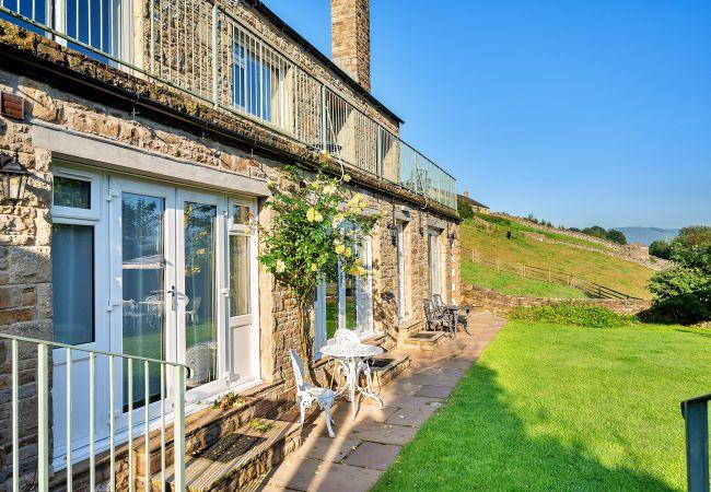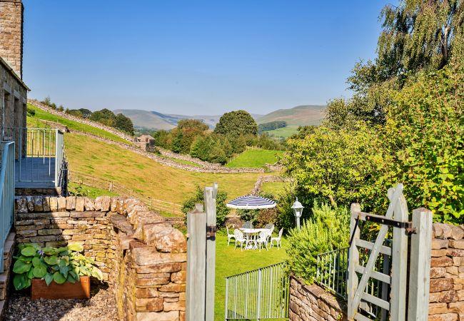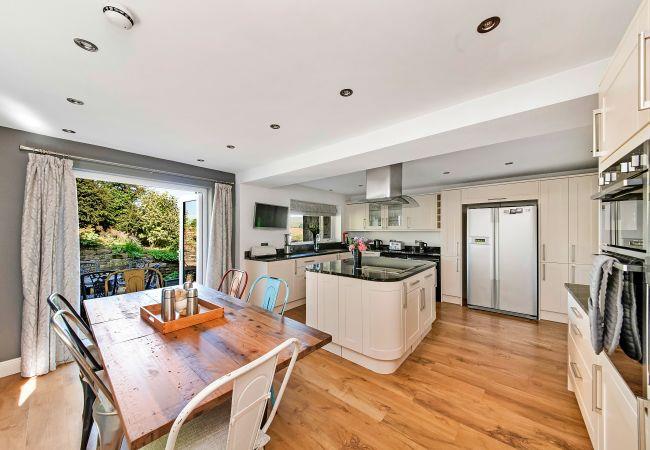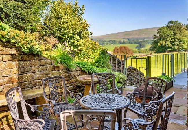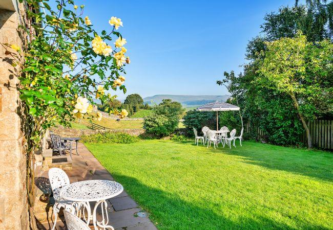 On the ground floor, you'll find a welcoming living room that opens up to scenic views of the garden and Dales, with a door leading to a wrap-around terrace. You’ll be able to cook up a storm during your stay in the well-equipped kitchen, featuring a large granite island, along with a breakfast/dining area for gathering with loved ones. Additionally, there is a separate dining room with French doors opening onto the terrace. The spacious private garden allows you to unwind while taking in the captivating fell views, offering a picturesque spot to watch the sunset and gaze at the bright stars on clear nights.