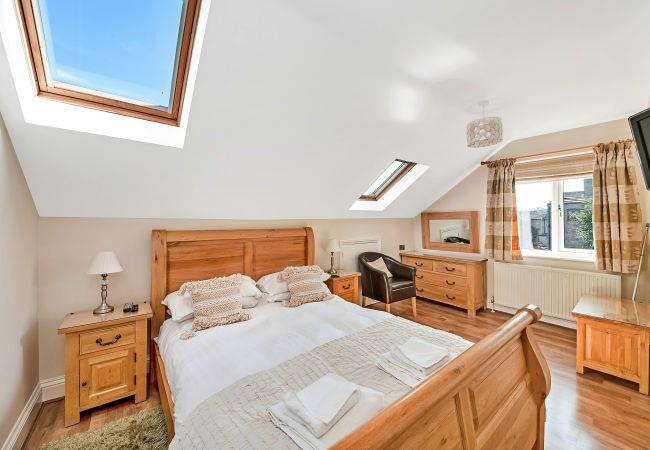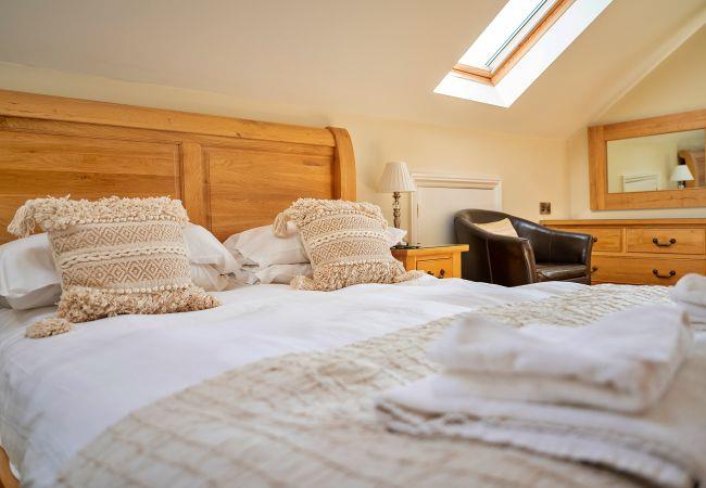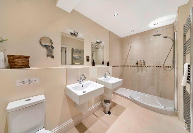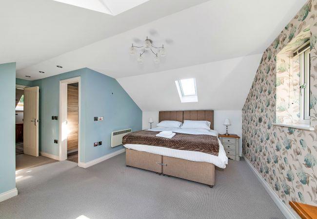 Bedroom 1: With zip and link super kingsize bed (can be twin beds on request), TV and en-suite with shower over roll-top bath, toilet and heated towel rail.