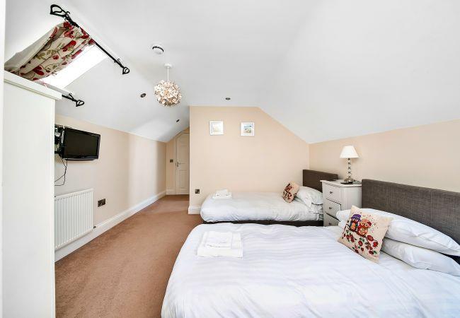 Bedroom 6: With twin beds, TV and en-suite with shower cubicle, toilet and heated towel rail.