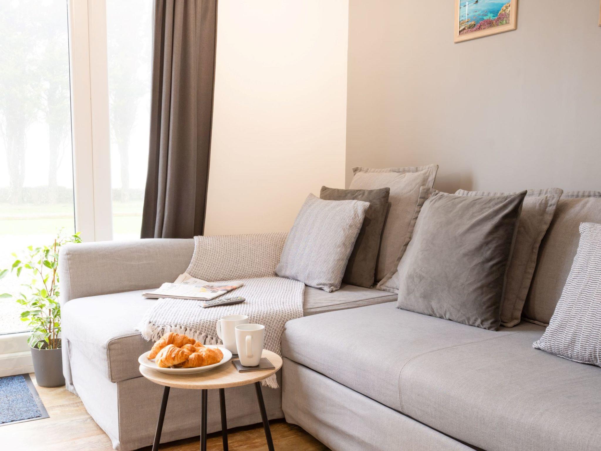 3-room chalet. Spacious and bright, modern and luxurious furnishings: open living room with 1 double sofabed and TV (flat screen). Exit to the garden. 1 double bedroom with 1 double bed. 1 room with 1 x 2 bunk beds (90 cm, length 190 cm). Open kitchen (4 hot plates, oven, toaster, kettle, microwave). Shower/WC. Gas heating. Garden. Terrace furniture, barbecue. Beautiful view of the countryside. Facilities: Internet (WiFi). Parking at the house. Please note: suitable for families. Maximum 1 pet/ dog allowed. TV only EN. Smoke alarm. The holiday properties may differ in living space, floorplan, equipment and furnishing.