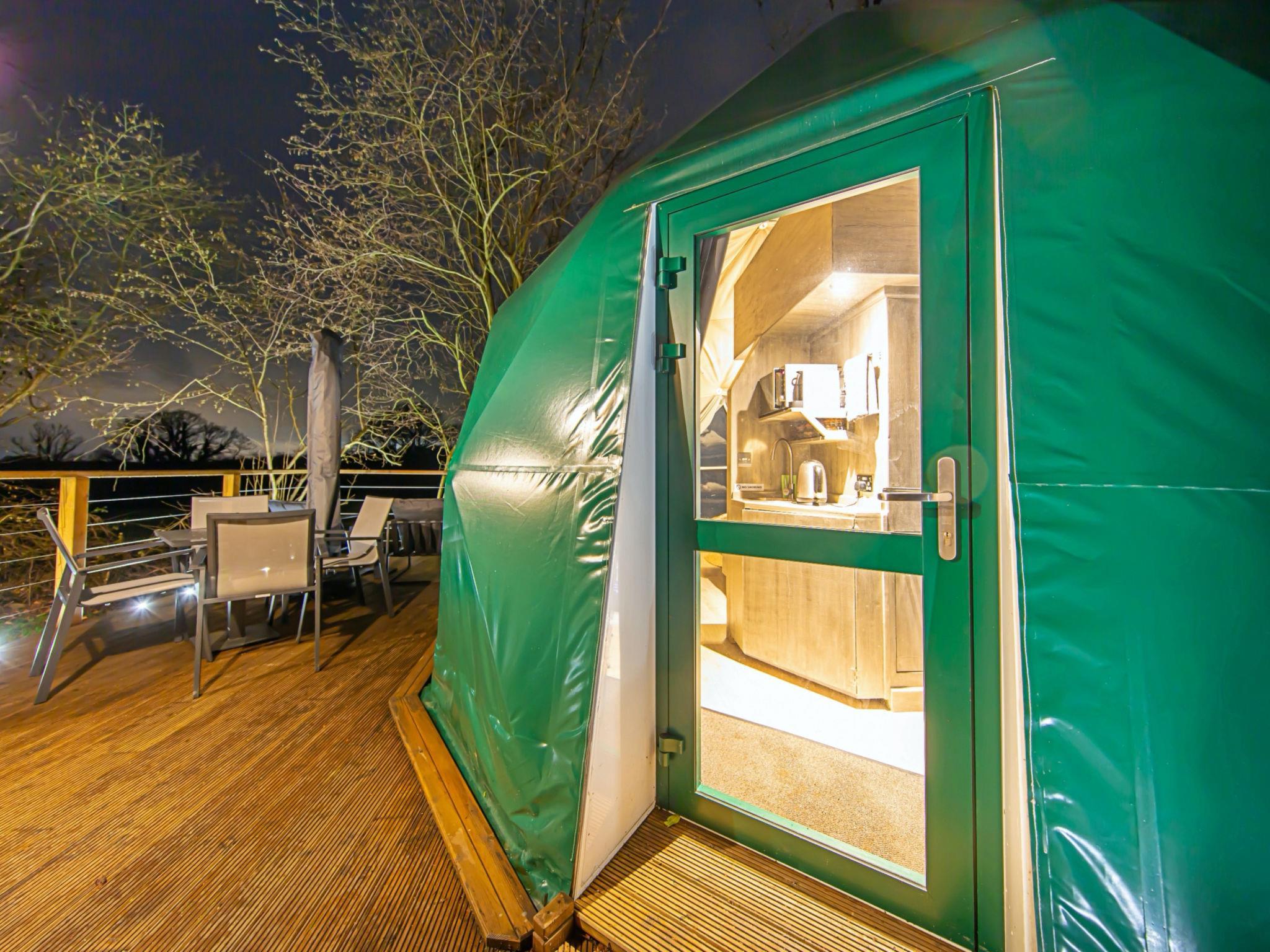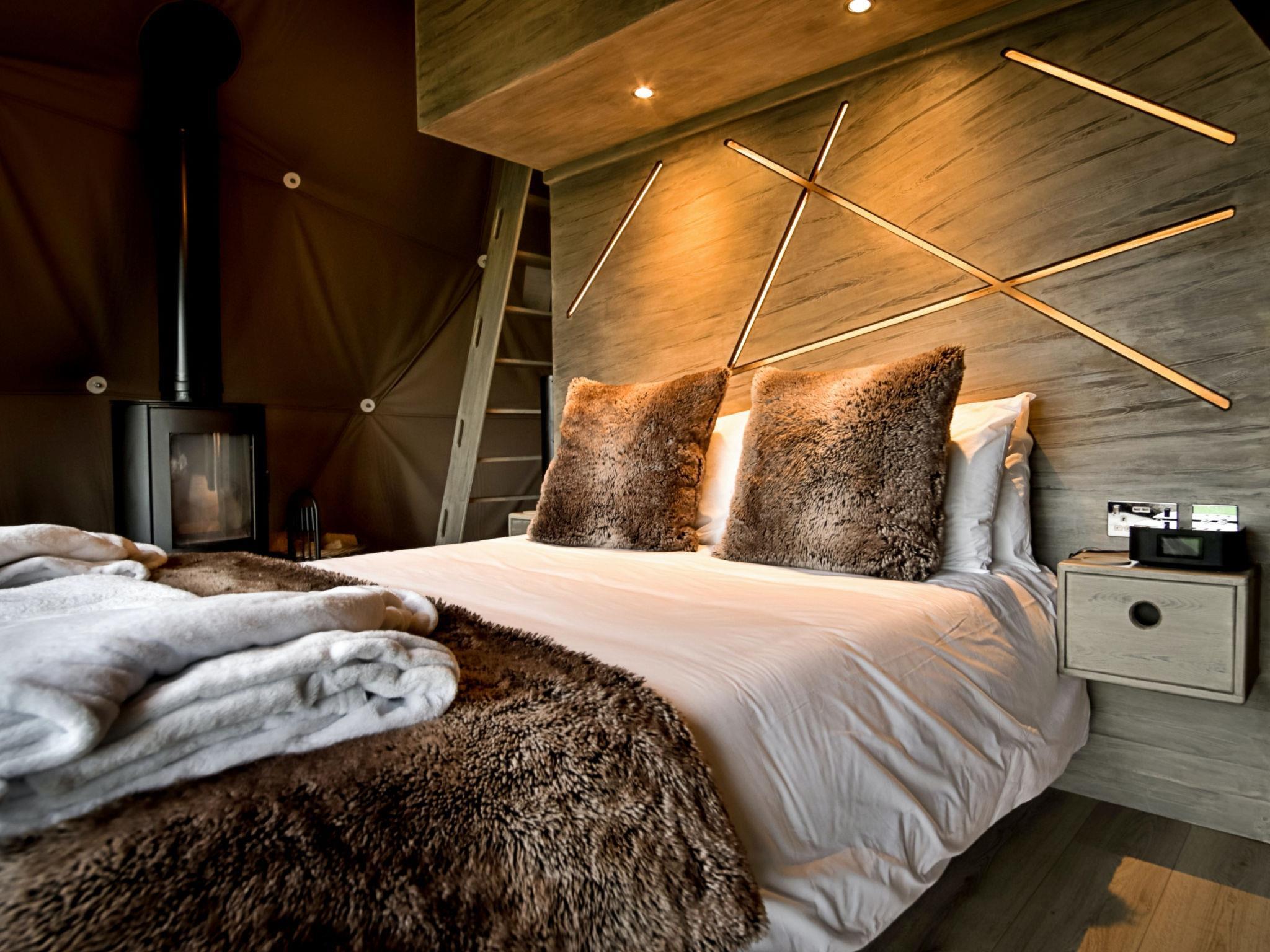 "Hever Luxury Dome", 2-room chalet 30 m2, on the ground floor. Object suitable for 4 adults. Living room with open-hearth fireplace. 1 room with 2 french beds. Kitchen (toaster, kettle, microwave, electric coffee machine). Shower/WC. Barbecue. Facilities: iron. Internet (WiFi, free). Parking (2 cars). Please note: non-smokers only. 2 pets/ dogs allowed. Smoke alarm.