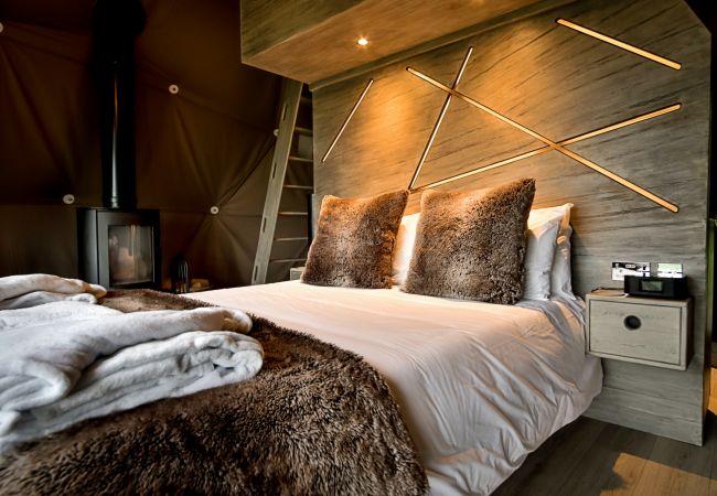 Inside your dome you will be invited by a spacious but cosy, relaxed area with a kitchenette, dressing area with storage, dining area, luxury beds and the most comfortable bean bag lounger.