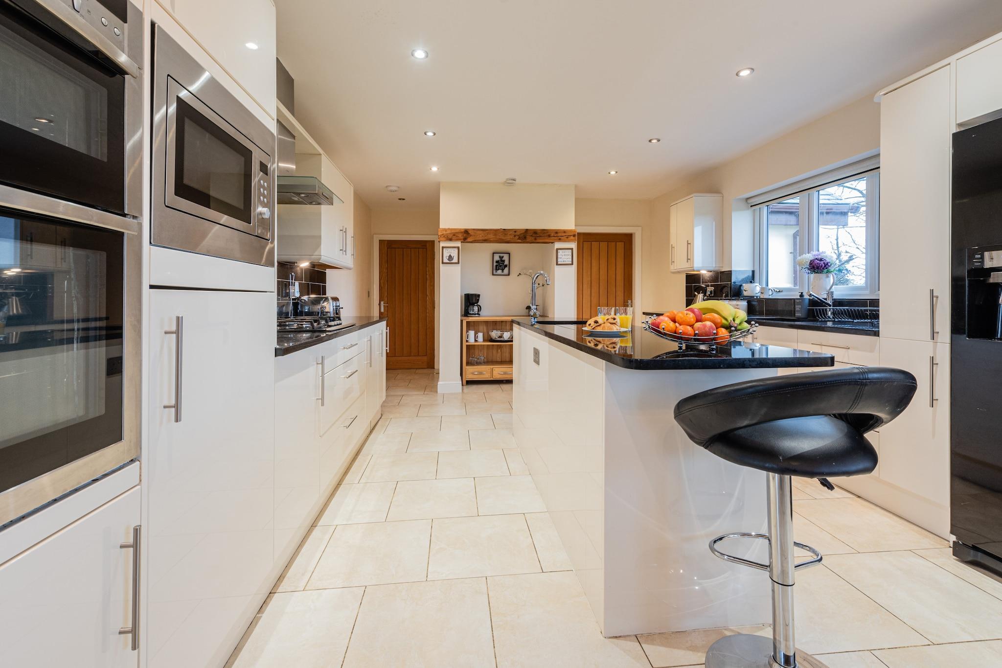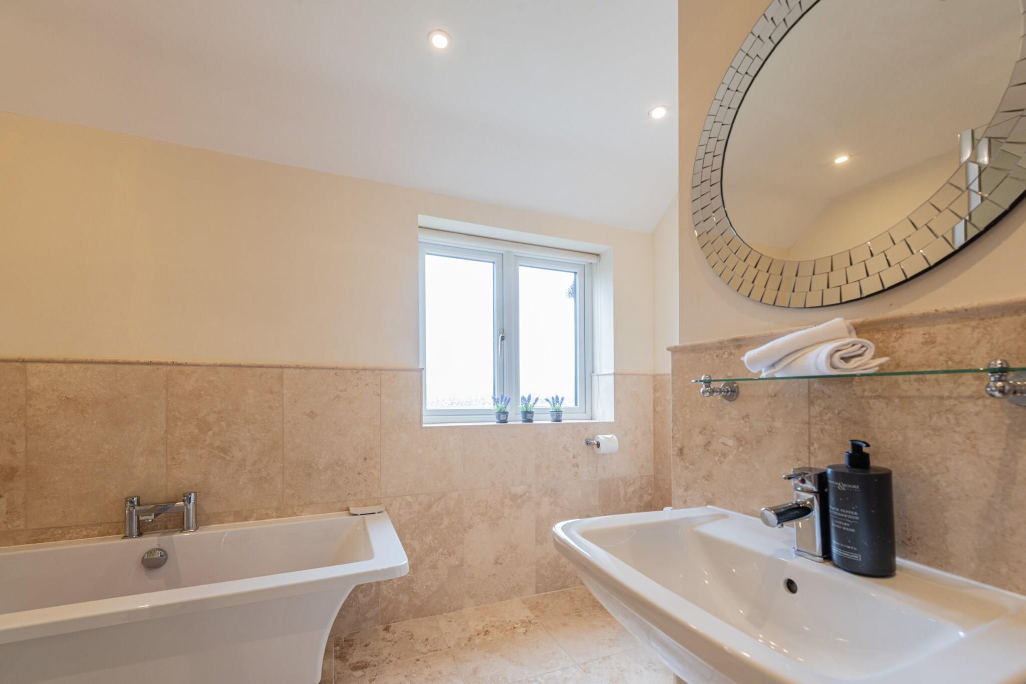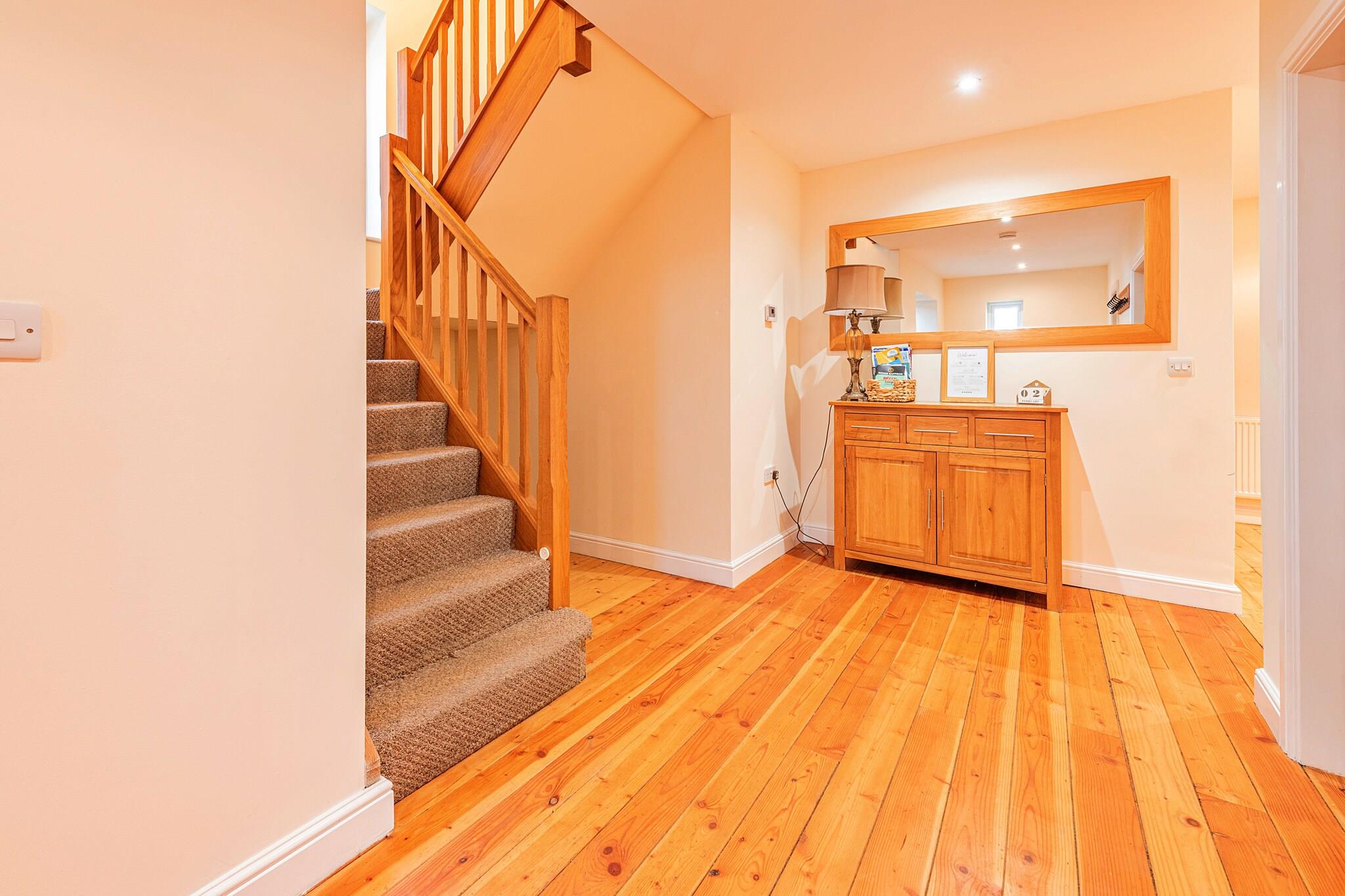 Dette charmerende landsted, beliggende ved foden af ??Clwydian Range AONB i Babell, tilbyder et idyllisk tilflugtssted for op til 14 gæster. Ejendommen har syv smukt indrettede soveværelser og seks moderne badeværelser, herunder et praktisk vådrum med bruseniche. Ideel til familiesammenkomster eller grupperejser, husets rummelige layout sikrer, at alle har masser af plads til at slappe af, socialisere og nyde deres ophold. De generøse opholdsområder, herunder en hyggelig lounge med bløde siddepladser og et stort tv, skaber et indbydende miljø for fælles stunder. Den store lukkede have med terrasse og siddepladser tilbyder et fredeligt sted at slappe af. Det fuldt udstyrede køkken er perfekt til at tilberede måltider sammen, med moderne apparater, herunder en elektrisk ovn og kogeplader, mikroovn, køleskab i amerikansk stil og opvaskemaskine. En stilfuld central ø giver rigelig plads til madlavning, mens den tilstødende spiseplads byder på siddepladser til hele gruppen. For dem, der foretrækker at spise ude, byder den nærliggende Crown Inn Lixwm og Dinorben Arms i Bodfari på lokale lækkerier. Friluftsentusiaster vil sætte pris på de naturskønne vandre- og cykelstier lige ved døren, herunder Offa's Dyke Path og Brenig Trail. Ejendommen inkluderer også adgang til husdyr, hvilket tilføjer et charmerende touch, som gæsterne kan nyde. Placeringen er perfekt for naturelskere, med masser af nærliggende vandreruter med en fantastisk udsigt over den walisiske grænse og Clwydian Range. Uanset om du er her for at slappe af eller udforske, kombinerer dette hus moderne komfort med skønheden i landskabet, hvilket gør det til den perfekte base for din næste flugt.
