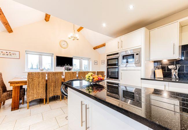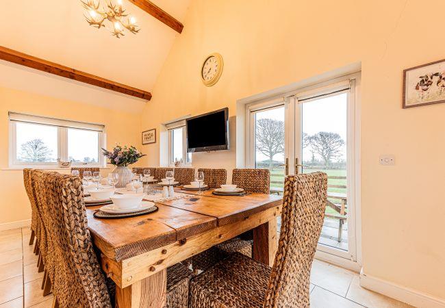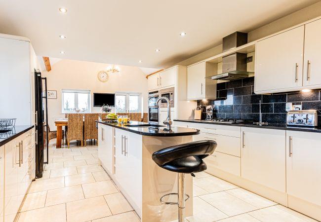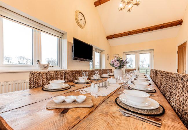 The farmhouse, based on a small working farm, offers seven beautifully appointed bedrooms and six modern bathrooms, including a convenient wet room with a walk-in shower, meaning there’s room for all ages. The home’s generous layout ensures plenty of space for relaxation, dining, and socialising.
