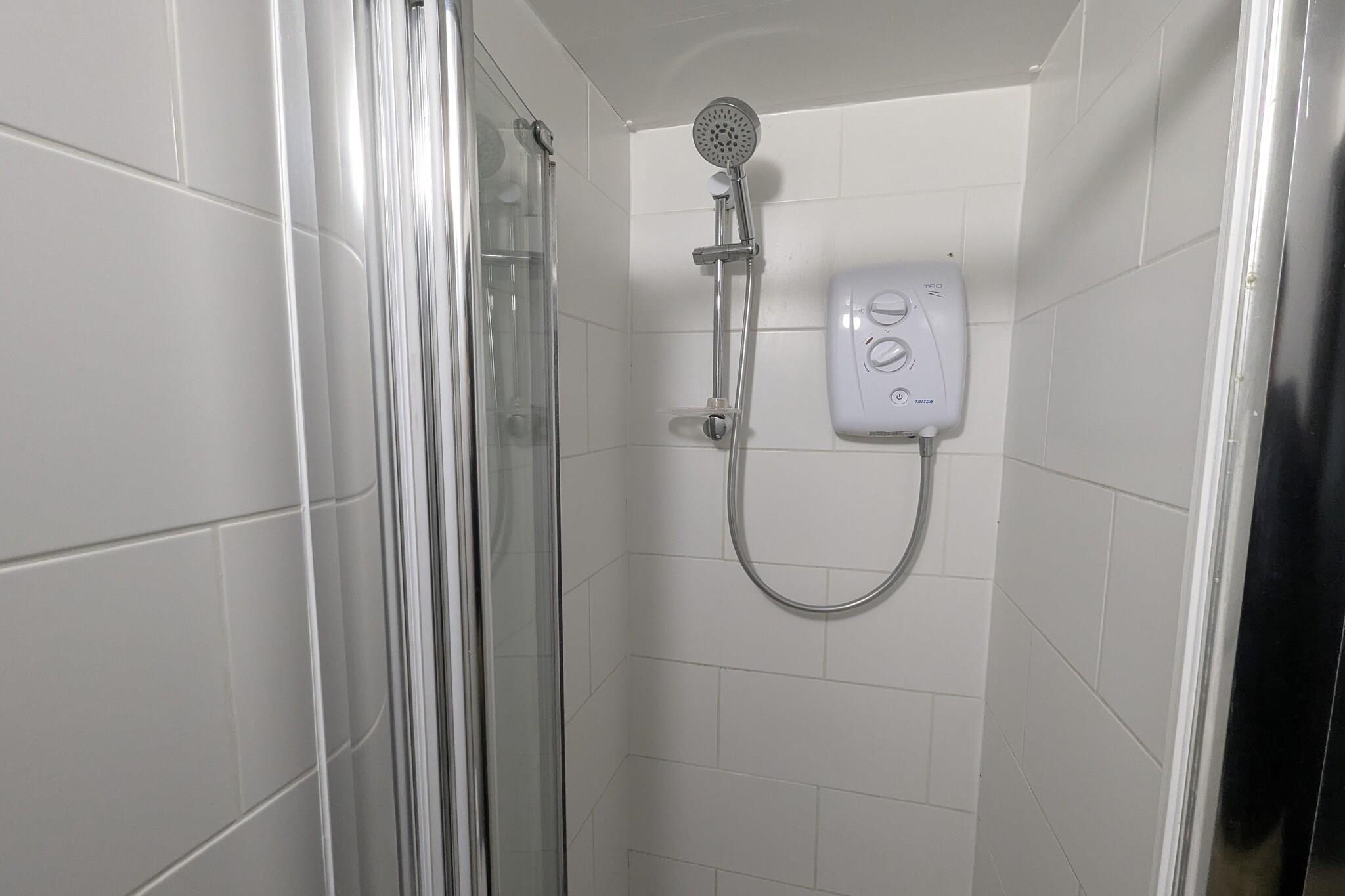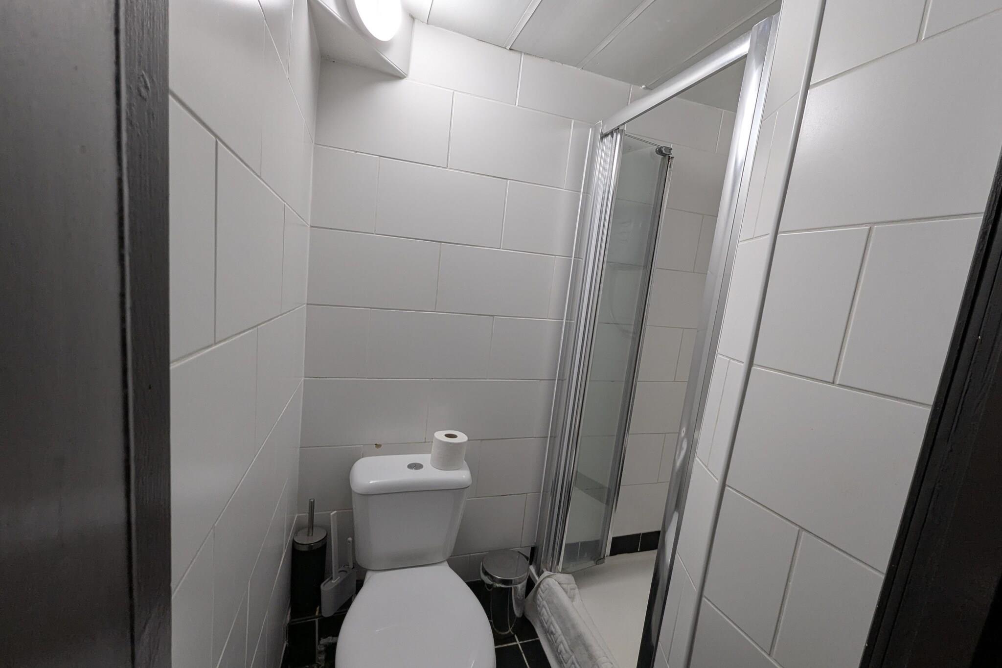 Stueetage: (Køkken(køleskab), soveværelse(enkeltseng, Fjernsyn(Smart-TV)), badeværelse(bruser, toilet, føntørrer, )) Surveillance camera,