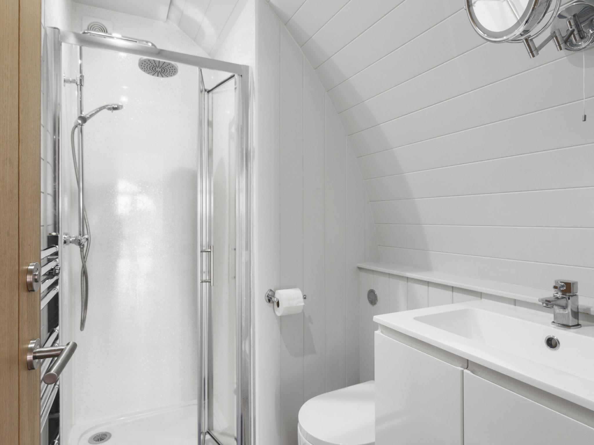 "The Highland Camping Pod", 3-room chalet 35 m2, on the ground floor. Object suitable for 6 adults. Living room with 1 sofabed, 1 pull-out bed and TV. 1 room with 1 double bed. 1 room with 2 beds. Kitchen (oven, Gas stove, 4 gas rings, kettle, freezer). Shower/WC. Terrace. Barbecue. Parking (2 cars). Please note: non-smokers only. 2 pets/ dogs allowed. Smoke alarm.