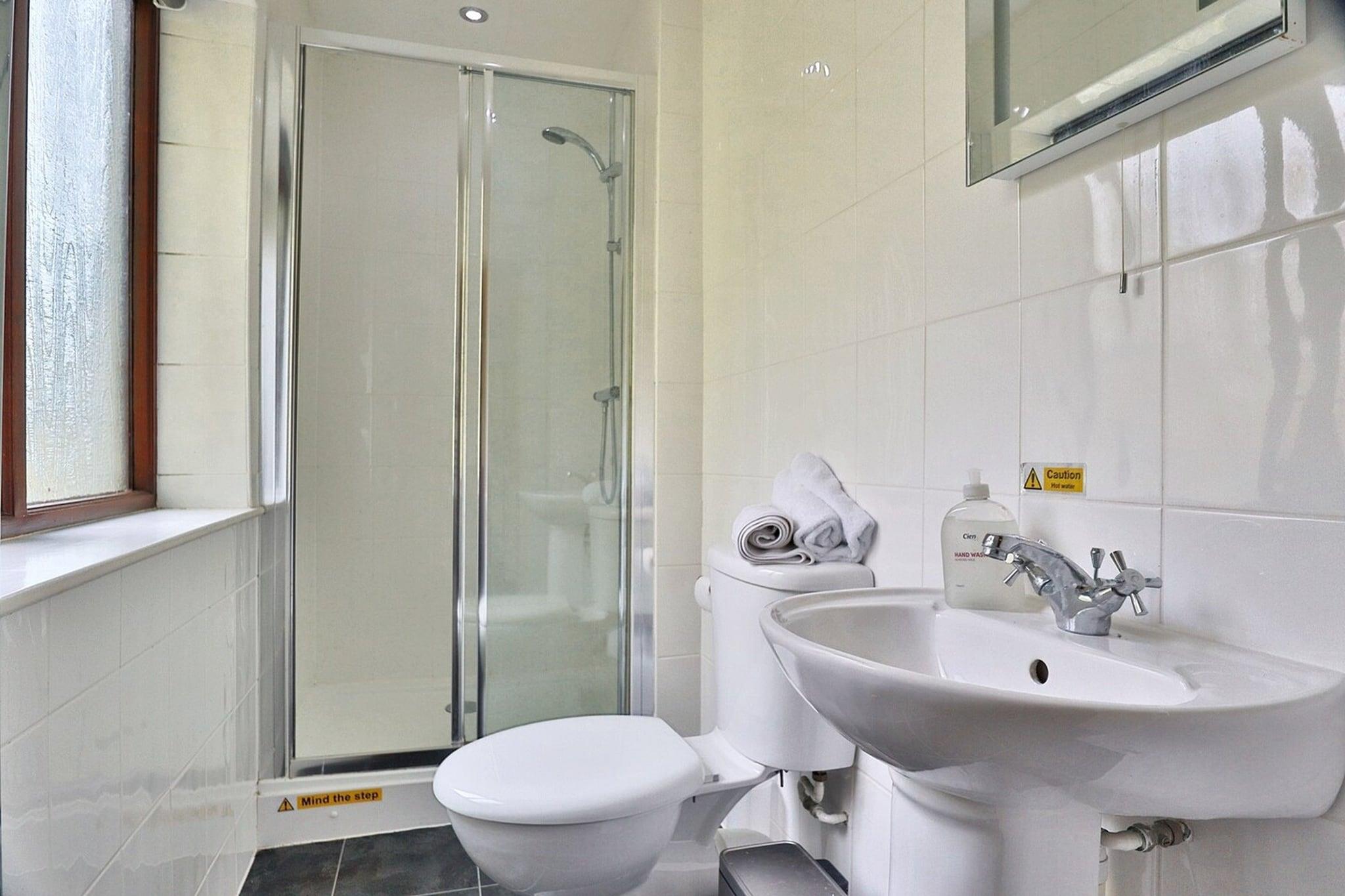 Stueetage: (soveværelse(enkeltseng, dobbeltseng, dobbeltseng, Fjernsyn, elkedel, kaffemaskine), badeværelse(bruser, toilet, Håndklæder inkl., ))
