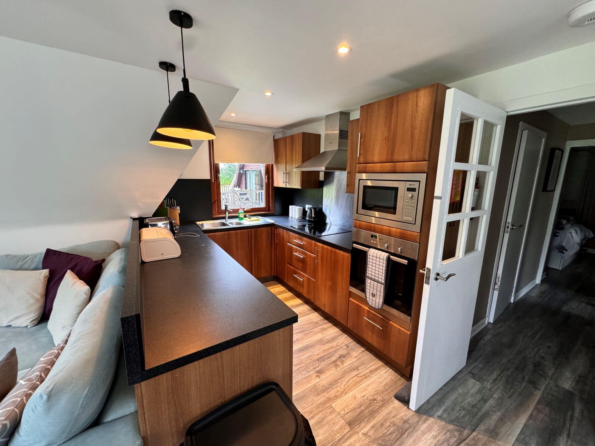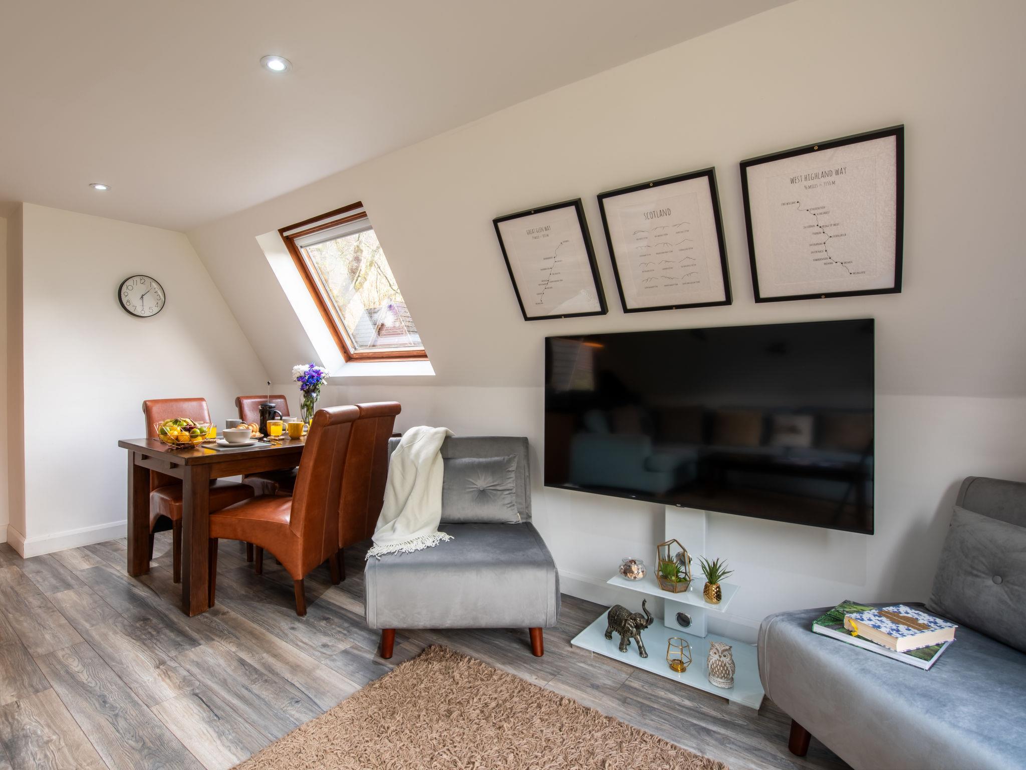 36 km from Fort William: Cosy, comfortable chalet "Lodge 6", detached, surrounded by trees. On the outskirts, 22 km from the centre of Spean Bridge, in a secluded, quiet position, 5 m from the lake, in the countryside. For shared use: children's playground. Private: natural garden. Terrace, garden furniture, public parking 10 m. Shop 16 km, grocery 16 km, supermarket 37 km, bus stop "School" 5 km. Golf course (18 hole) 36 km, cable car 36 km, slopes 36 km. Nearby attractions: Fort William 36 km, Inverness 69 km, Harry Potter Steam Train 58 km. Well-known ski regions can easily be reached: Nevis Range 36 km. Well-known lakes can easily be reached: Loch Lochy 13 km, Loch Ness 16 km, Loch Eil 61 m. Hiking paths: Great Glen Way 1 km. Please note: car recommended. Suitable for families, baby equipment (included). Additional accommodations can be booked.