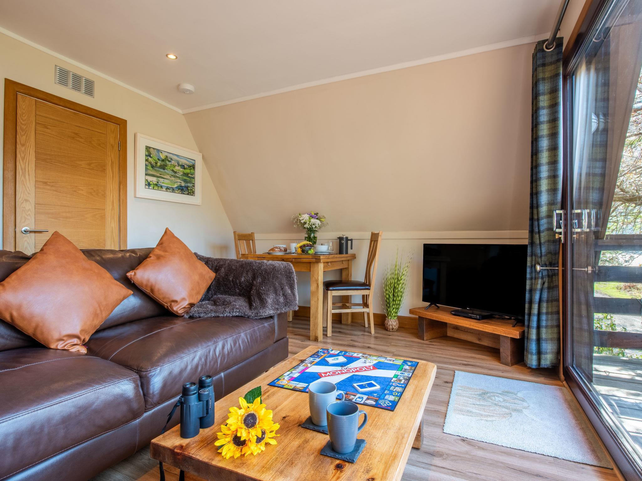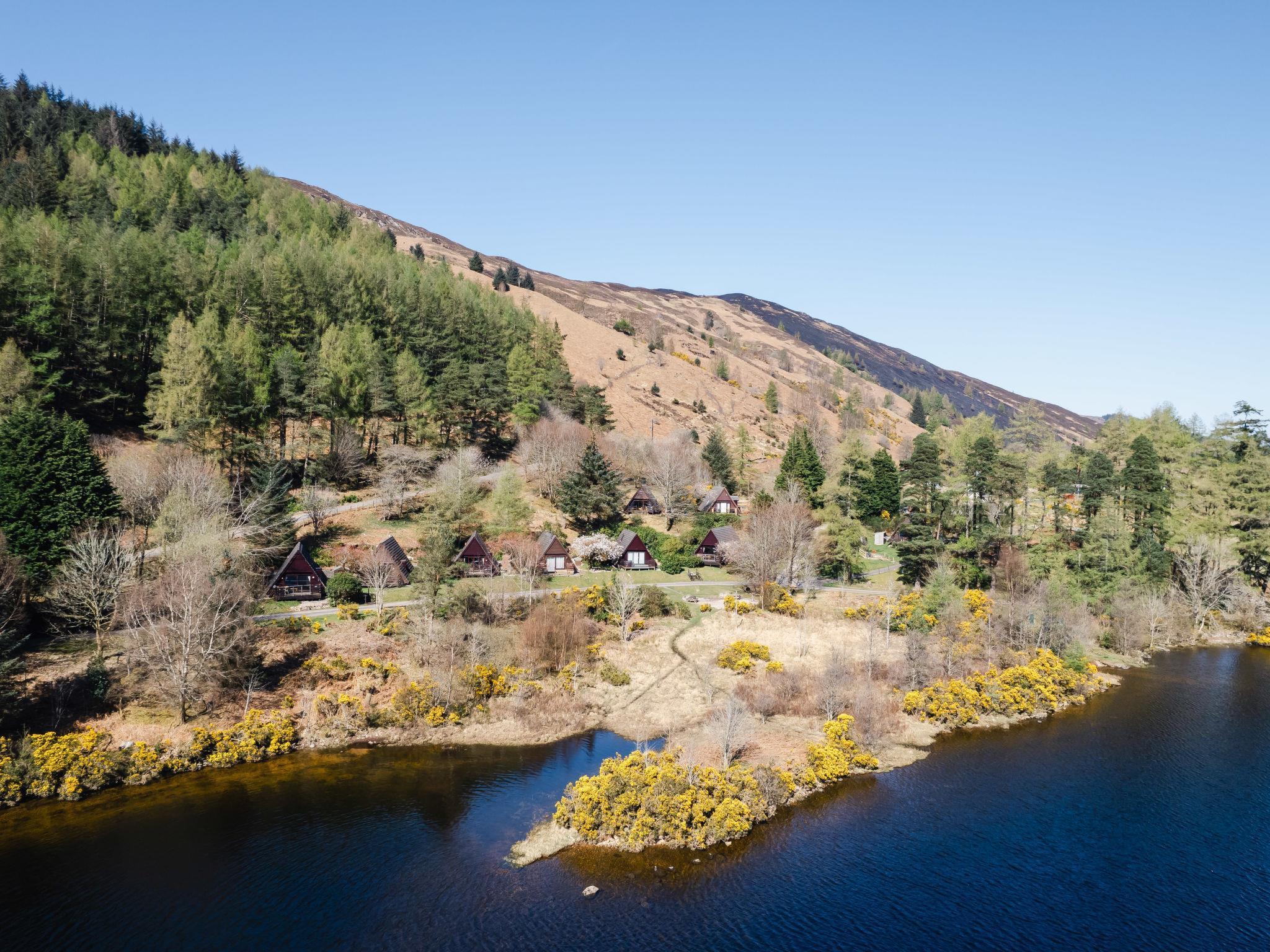 25 km from Fort William: Very cosy, comfortable chalet "Sandpiper Lodge", detached, surrounded by trees. In a secluded, quiet position, 50 m from the lake, in the countryside. Private: natural garden, parking (limited number of spaces), public parking 20 m. Bus stop "School" 5 km. Nearby attractions: Fort William, Inverness, Harry Potter Steam Train. Well-known lakes can easily be reached: Loch Lochy, Loch Eil. Hiking paths: Nevis Range. Please note: car recommended. Suitable for families.