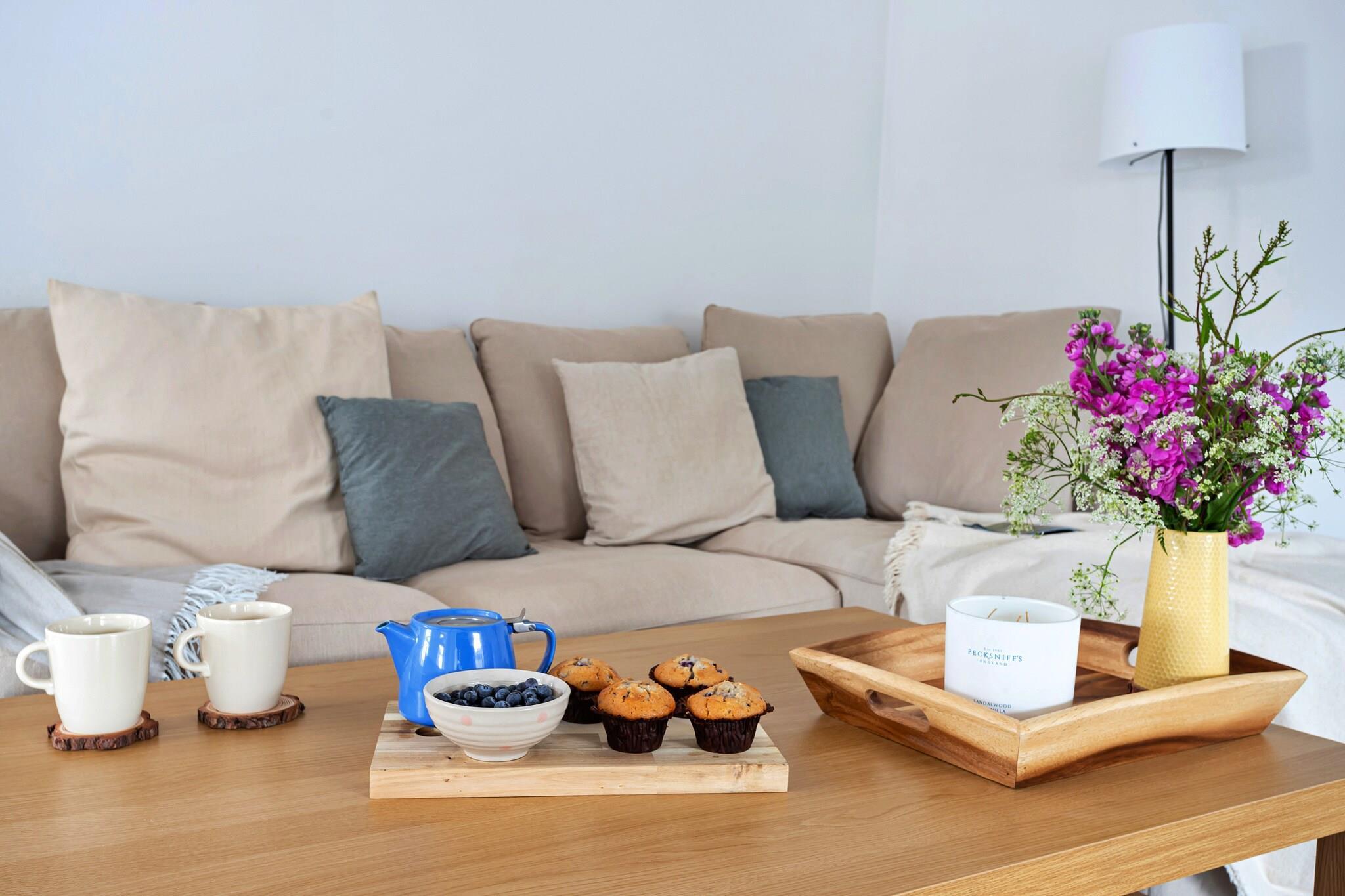 Stueetage: (åbent køkken(spisebord, elkedel, brødrister, ovn, køle-fryseskab, ), toilet(håndvask, toilet), Internetadgang) På 1. etage: (Stue(Fjernsyn(Smart-TV), sofahjørne), soveværelse(dobbeltseng), soveværelse(enkeltseng, enkeltseng), badeværelse(bruser, håndvask)) vaskemaskine, varme(central), parkering