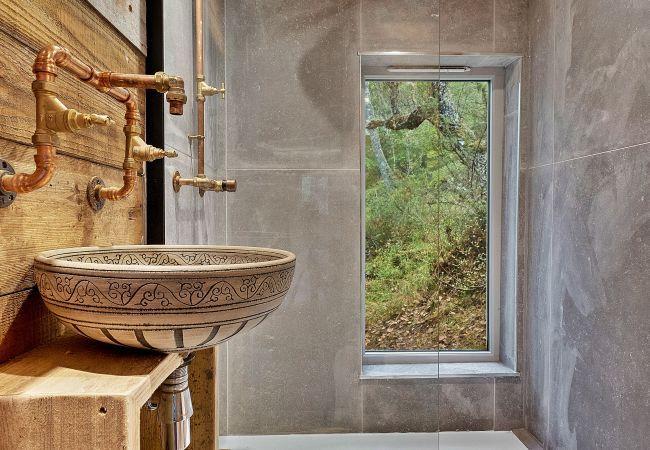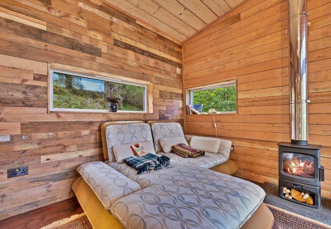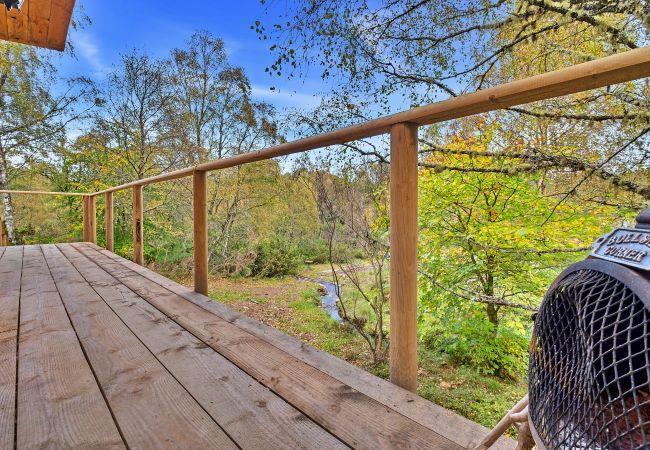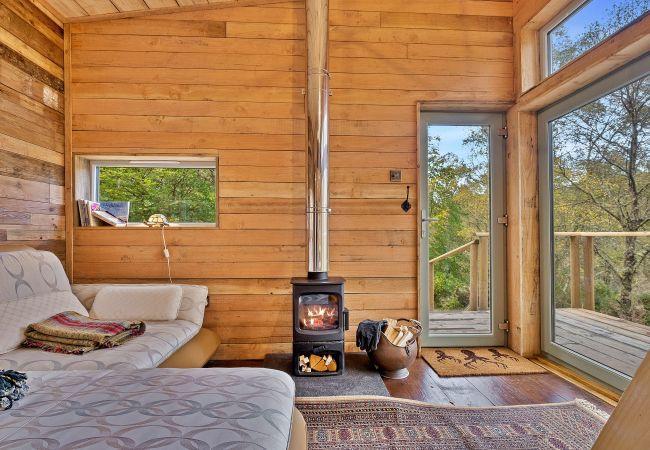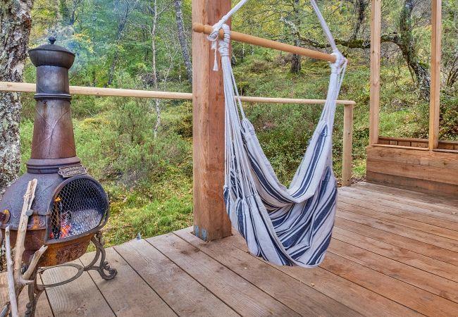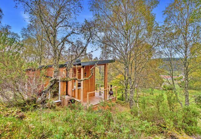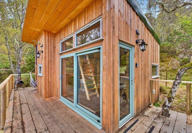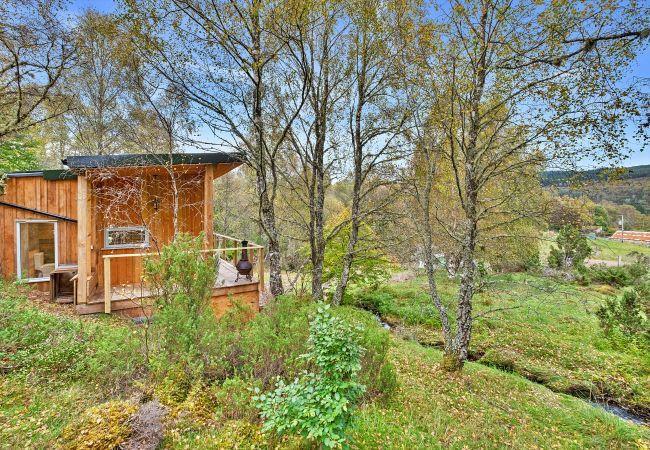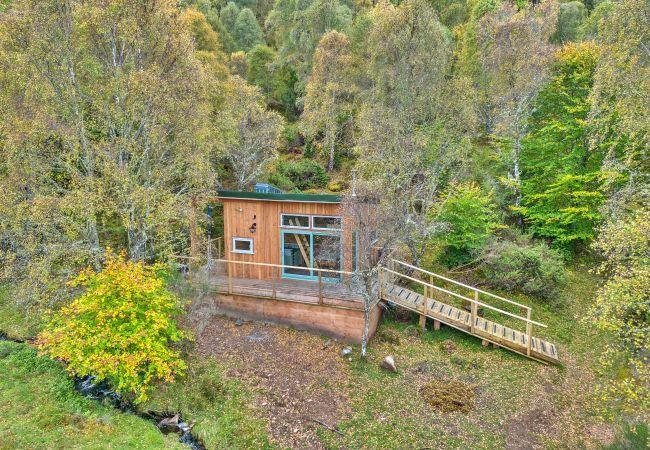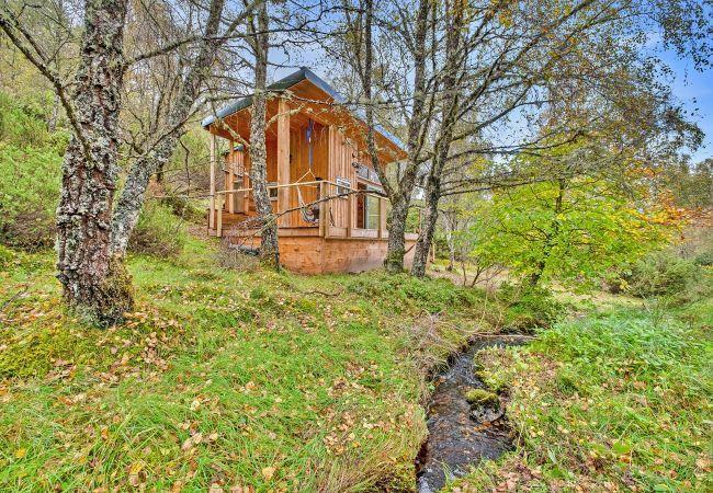 A true cabin in the woods. Escape to Cosagach Falls in the Highlands of Scotland, a natural idlers paradise for two, nestled by a quiet stream amidst an enchanting 400-acre Native Scottish Forest estate with gentle waterfalls in the Strathglass Valley.