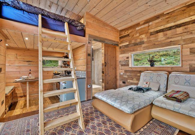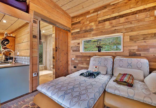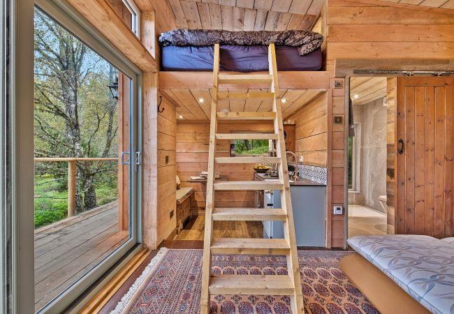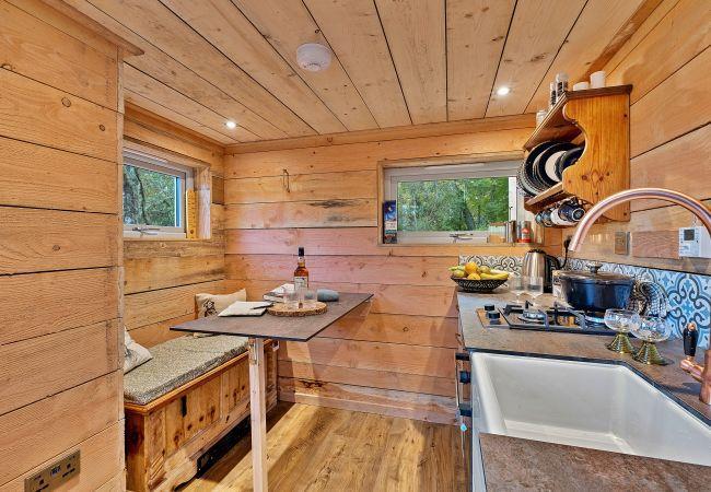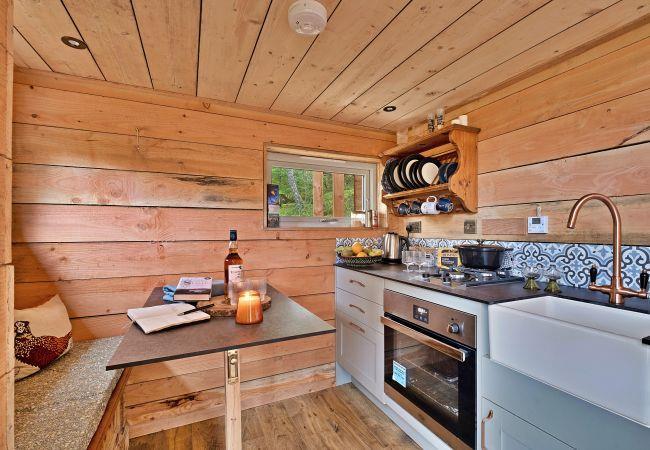 Step inside into the open plan living area, with a mezzanine super-king size bed and a star-gazing roof window, accessed via a wooden ladder. A large, comfortable sofa and contemporary kitchen - including oven, kettle, small fridge and hob, naturally blend all the convenience of cosy modern living with a rustic escape. You’ll find one luxury bathroom with shower, basin and WC.?
