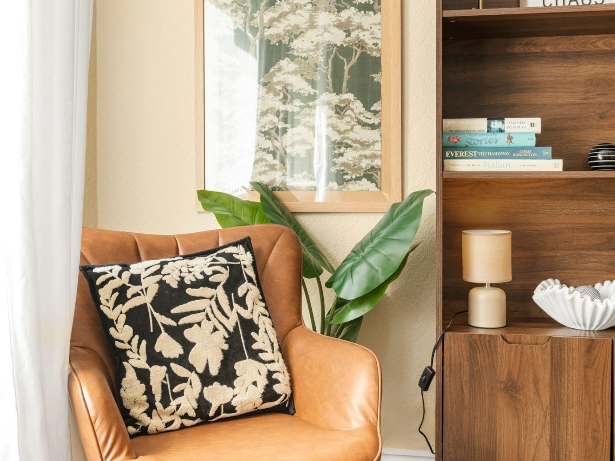 Inside, you will find a warm and inviting interior outfitted with all the comforts of home. The house features three cozy, well-appointed bedrooms, all designed to ensure a restful and peaceful sleep. For those who need to stay connected and productive, a dedicated home office with high-speed 1GBPS broadband awaits you. When it's time to relax, the living area, complete with a 50-inch smart TV, offers a plethora of entertainment options, including streaming services and various connectivity options, ensuring your downtime is as enjoyable as possible.