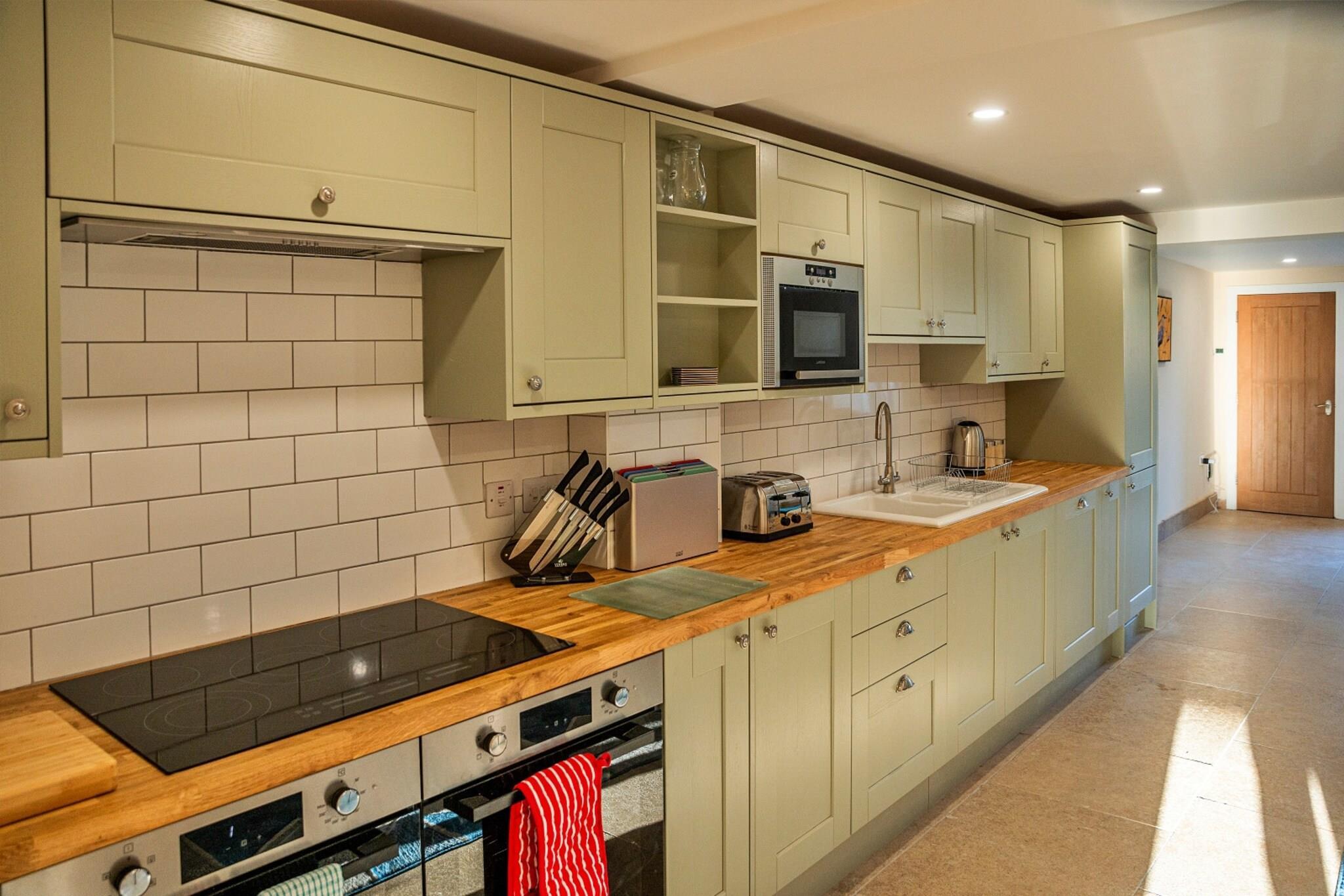 Denne rummelige og stilfulde staldombygning, beliggende i den maleriske landsby Little Rissington, kan rumme op til otte gæster. Opholdsstuen i åbent plan er ideel til socialt samvær, med et smart-tv og dobbelte døre, der åbner op til en privat have komplet med udendørs siddepladser og et spabad. Det veludstyrede køkken har en elektrisk ovn, kogeplader, mikroovn, køleskab, fryser og opvaskemaskine, perfekt til et ophold med egen forplejning. Derudover sikrer et bryggers med vaskemaskine og tørretumbler bekvemmelighed, mens ejendommen også er kæledyrsvenlig, hvilket gør den til et godt valg for familier og grupper med lodne ledsagere. Beliggende i hjertet af Cotswolds tilbyder denne ejendom en ideel base for at udforske de nærliggende attraktioner. Det berømte Bourton-on-the-Water, kendt som "Cotswolds Venedig", og Bibury med sin ikoniske Arlington Row, er kun en kort køretur væk. Området er kendt for sine naturskønne vandre- og cykelstier, perfekt til udendørsentusiaster. Familier vil nyde at besøge Birdland Park and Gardens, mens de omkringliggende bakker og landskaber byder på en betagende udsigt. Den nærmeste togstation er let tilgængelig, og ejendommen har gode vejforbindelser til nærliggende byer og landsbyer. Laden har fire rummelige soveværelser, herunder to king-size senge, en dobbeltseng og et dobbeltværelse, hvilket sikrer komfort og fleksibilitet for store familier eller grupper. Der er to badeværelser: et en-suite med brusekabine og et familiebadeværelse med badekar og brusekabine. For ekstra bekvemmelighed inkluderer ejendommen alle væsentlige faciliteter såsom sengelinned, håndklæder og internetadgang.
