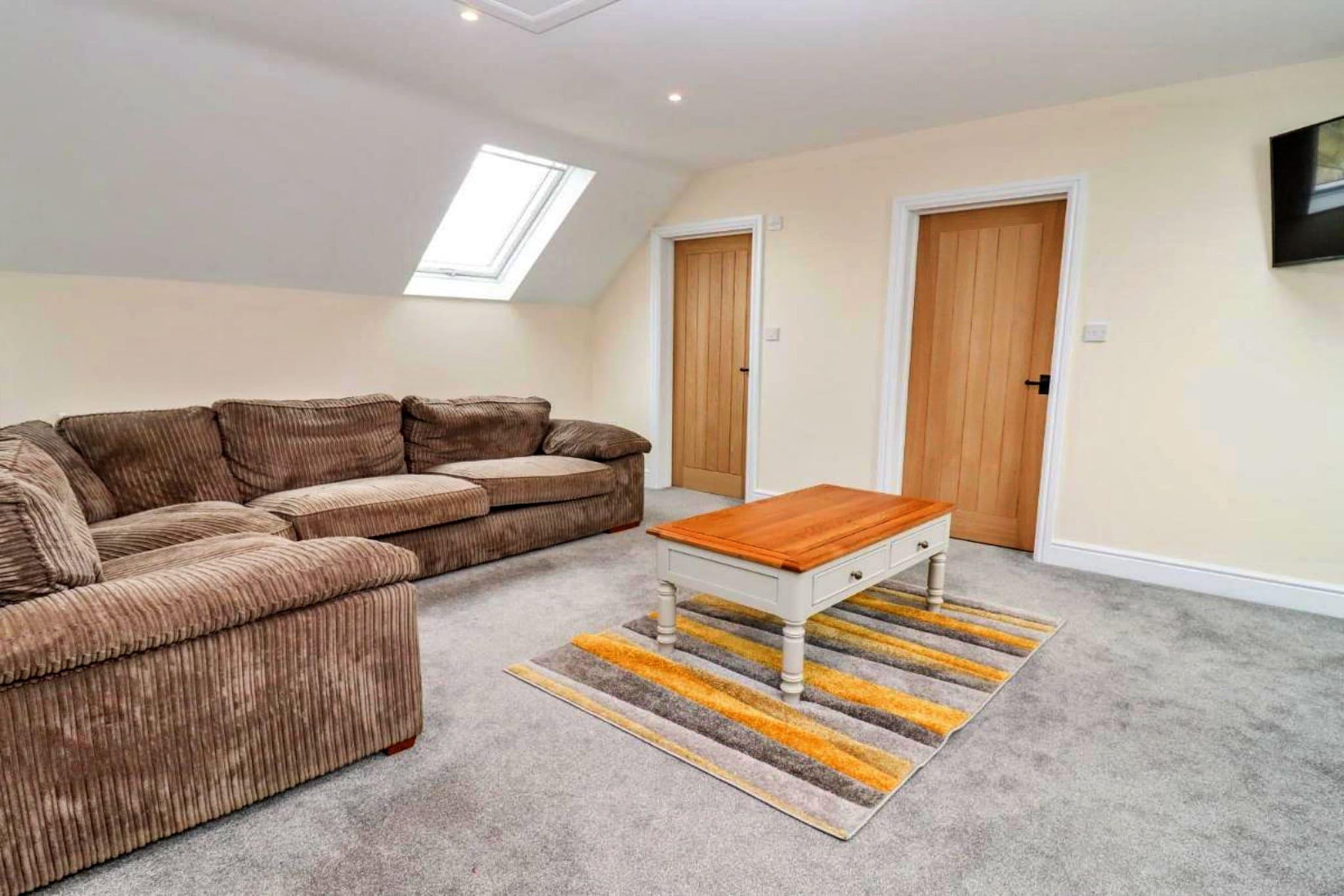 Denne hyggelige og stilfulde studiolejlighed tilbyder et perfekt tilflugtssted for par eller solorejsende. Layoutet i åbent plan har et komfortabelt opholdsområde med et Freeview-smart-tv, en spiseplads til to og et veludstyret køkken med moderne apparater, herunder en elektrisk ovn, elektrisk kogeplade, mikroovn, køleskab, fryser, opvaskemaskine, vaskemaskine og tørretumbler. Det rummelige soveværelse har en king-size seng, mens brusebadet har brusekabine og toilet. Lejligheden er kæledyrsvenlig, så gæsterne kan medbringe deres lodne ledsagere. Beliggende i den maleriske landsby Little Rissington, er lejligheden en ideel base for at udforske Cotswolds. Nærliggende attraktioner omfatter det charmerende Bourton-on-the-Water, ofte omtalt som "Cotswolds Venedig", og Bibury, kendt for den ikoniske Arlington Row. Friluftsentusiaster kan nyde vandrestier og cykelruter, mens familier vil sætte pris på de familievenlige attraktioner som Birdland Park and Gardens. Ejendommen er godt forbundet med vej, med nem adgang til nærliggende landsbyer og lokale markeder, hvilket gør det til et bekvemt og tilgængeligt valg for rejsende. Yderligere faciliteter omfatter gratis internetadgang, varme og udendørs parkering. Sengelinned og håndklæder leveres, og der er et refunderbart depositum for ro i sindet. Gæster har også mulighed for at tilføje ekstra tjenester såsom utilsigtet skadesdækning eller en barnestol. Uanset om du udforsker de lokale attraktioner eller blot slapper af i den hyggelige lejlighed, tilbyder denne studio alt det nødvendige for et behageligt og behageligt ophold.