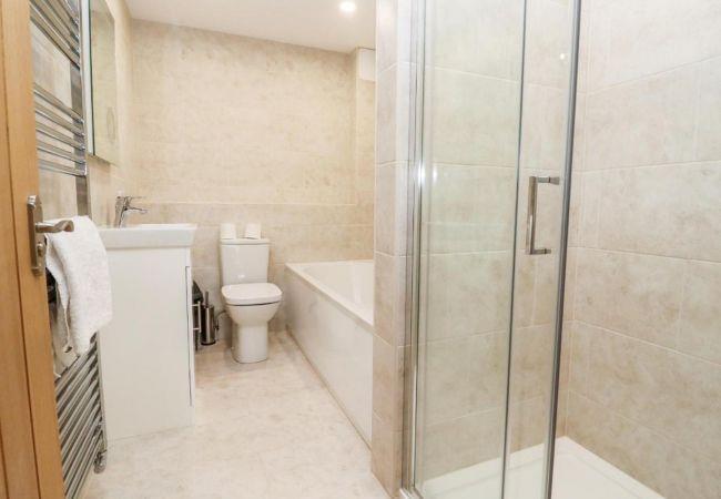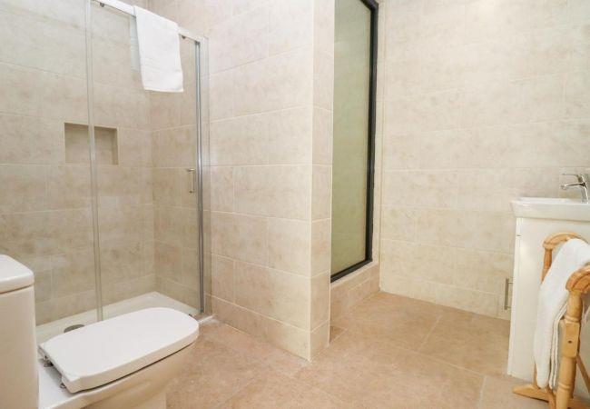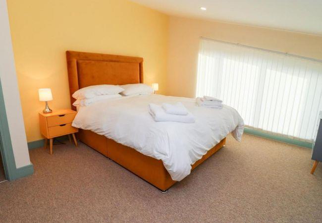 The ground-floor master bedroom offers a king-size bed and an en-suite with a walk-in shower. Upstairs, you’ll find additional bedrooms, including a double room and a twin with zip-and-link beds, making it a versatile option for families or groups. Sleek bathrooms on each floor provide comfort and privacy for everyone.