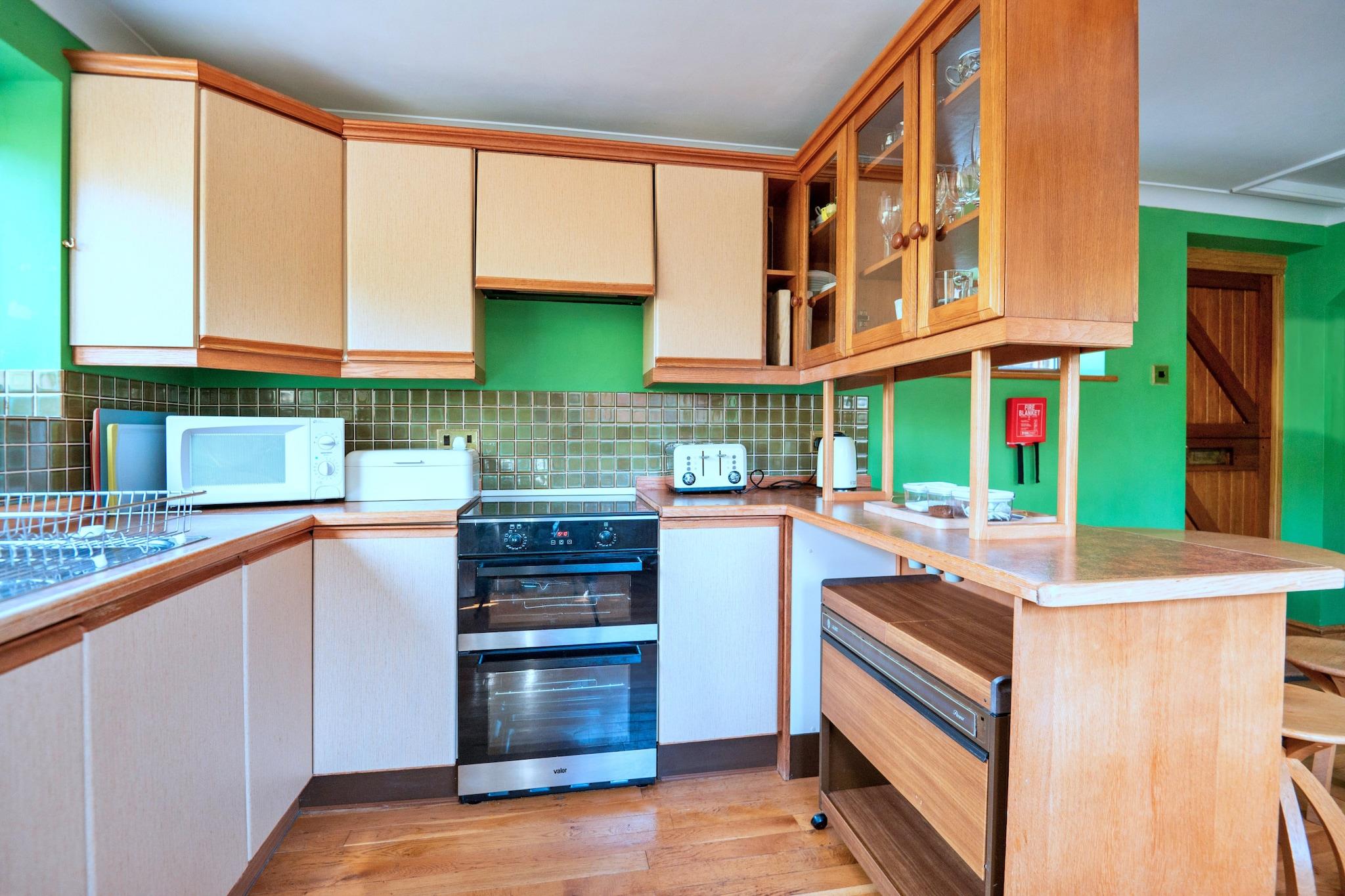 Dette charmerende feriehus tilbyder et hyggeligt og behageligt ophold med overnatning for op til seks gæster. Det har fire velindrettede soveværelser, herunder en dobbeltseng, en kingsize seng og to enkeltsenge. Boligen er kæledyrsfri og har ikke plads til kæledyr. En sofa er tilgængelig i stuen, hvilket gør det til et perfekt sted til afslapning, og der er ingen balkon. Feriehuset er ikke egnet til personer med nedsat mobilitet på grund af trapper, men yderligere faciliteter inkluderer en barneseng og højstol efter anmodning. Der er ingen ekstra gebyrer for aktiviteter, hvilket giver et stressfrit ophold for alle gæster. Beliggende i de naturskønne bølgende bakker i Mid Wales tilbyder denne ejendom en fantastisk panoramaudsigt over landskabet, hvilket gør det til et fredfyldt og fredeligt tilflugtssted. Den charmerende by Llanidloes ligger kun 3 km væk, hvor gæsterne kan udforske lokale markeder, butikker, caféer og pubber. For dem, der ønsker at udforske naturen, omfatter nærliggende attraktioner Elan-dalen med sine smukke reservoirer og vandfald og Gilfach-naturreservatet. De nærmeste byer, der byder på oplevelser ved havet, er Aberystwyth, Aberdovey og Ynyslas, som ligger omkring en times kørsel fra ejendommen. Feriehuset har et veludstyret køkken med alt det nødvendige til selvforplejning, herunder køleskab, komfur og mikroovn. Et opholdsområde med tv giver ekstra komfort, og spisepladsen rummer alle gæster. Ejendommen omfatter også moderne toiletfaciliteter, herunder badekar, separat bruser og håndklædetørrer.
