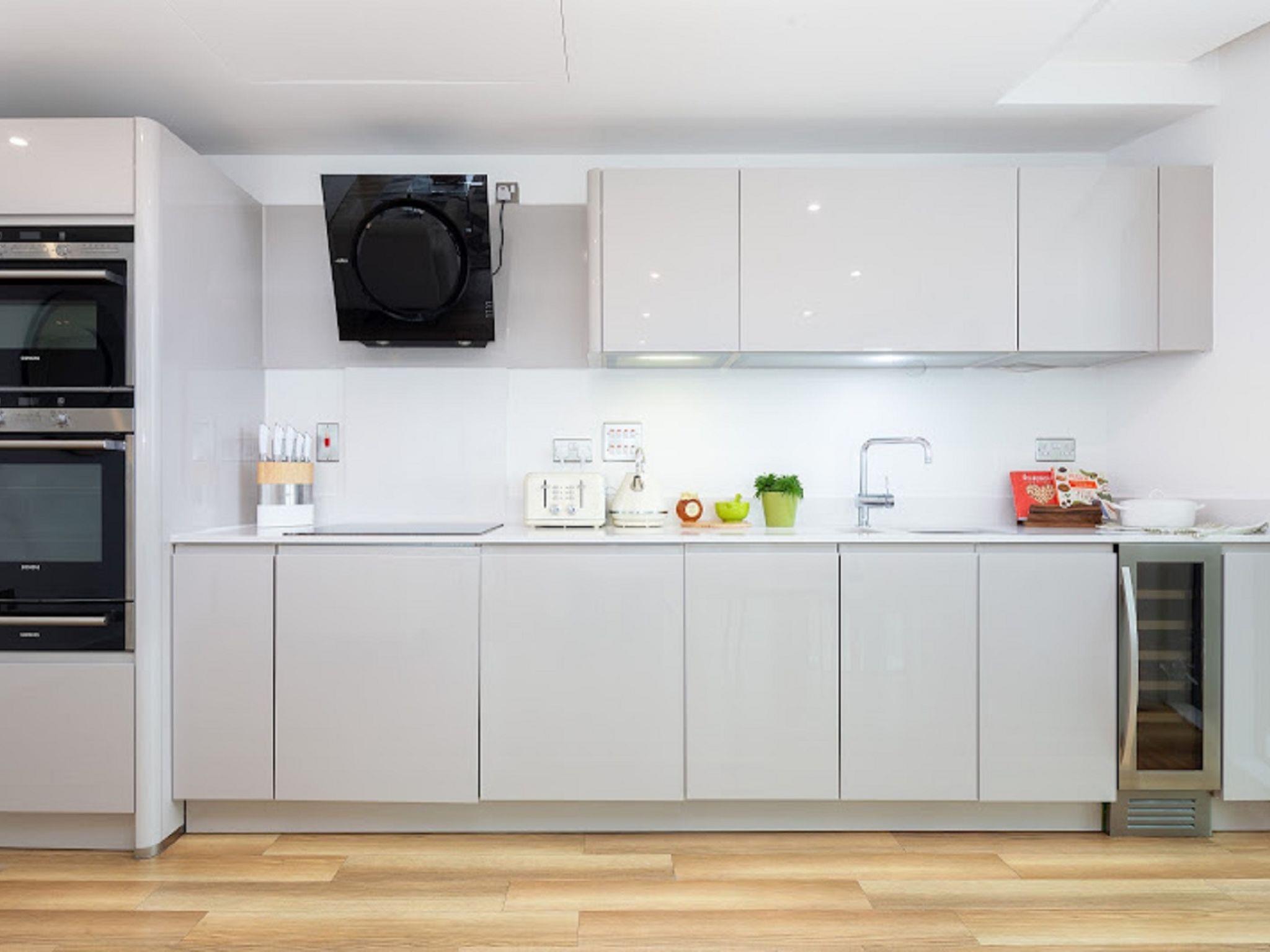 "Altitude Point", 2-room apartment 40 m2. Modern and stylish furnishings: open living/dining room with dining table and TV (flat screen). 1 double bedroom with 1 double bed. Open kitchen (4 hot plates, oven, dishwasher, toaster, kettle, freezer, combination microwave). Bath or shower/WC. Heating. Facilities: washing machine, dryer, baby cot for up to 2 year olds (extra), hair dryer. Internet (WiFi, free). Please note: suitable for families. Non-smoking house. TV only EN. Smoke alarm, fire extinguisher. The property is one of a type of property or apartment. GB265077785
