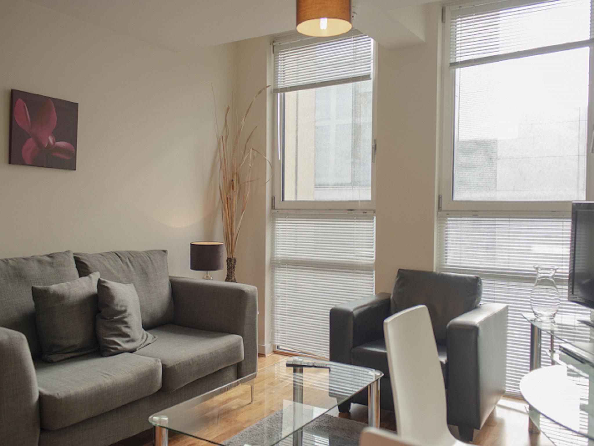 Modern apartment block "Lambs Passage". In the centre of London, in a central position. In the complex: WiFi, lift, central heating system, laundry (extra). Room cleaning weekly (included). Grocery, bar 100 m, bus stop "Silk Street" 160 m, railway station "Old Street" 800 m, underground station "Old Street" 800 m. Nearby attractions: Barbican Cultural Centre 3 km, St. Paul‘s Cathedral / Tate Modern 3 km, Buckingham Palace 6 km, Piccadilly Circus 6 km, Tower of London & London Bridge 5 km, London Eye 4 km. Please note: suitable for families, baby equipment on request (extra), childminding (extra). The photograph shows a typical example. The holiday properties may differ in living space, floorplan, equipment and furnishing.